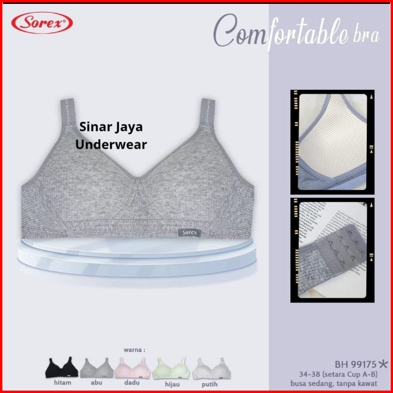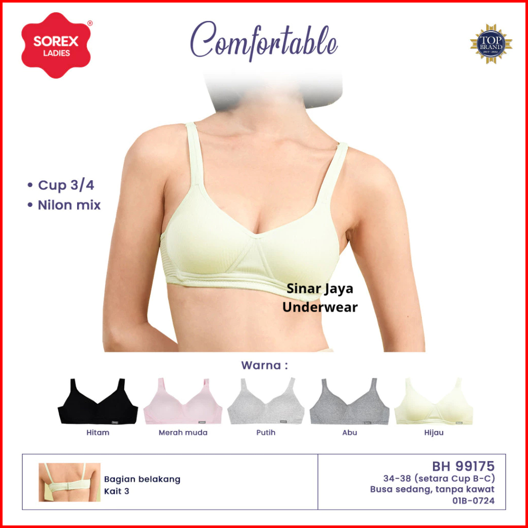 Sorex - Bra Bh Comfortable 99175 Bahan Nilon Mix Busa Sedang Tanpa Kawat Cup 3 4 Kait 3