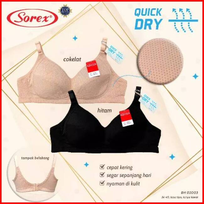 Bh Bra Sorex 02003 Cup B 34-40 Kait 2 Quick Dry Tanpa Busa Tanpa Kawat Fyk