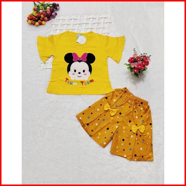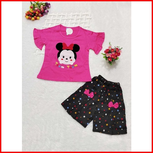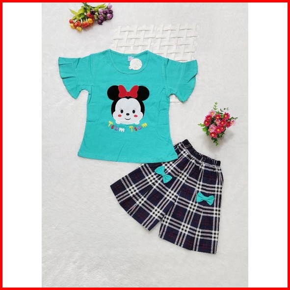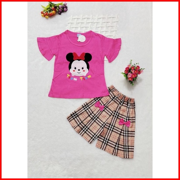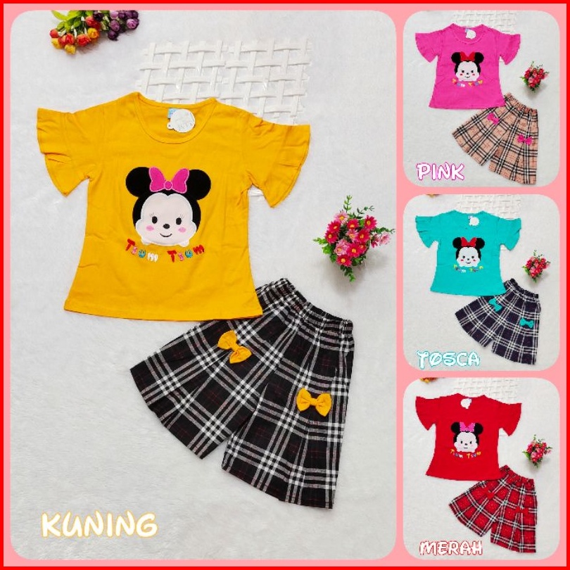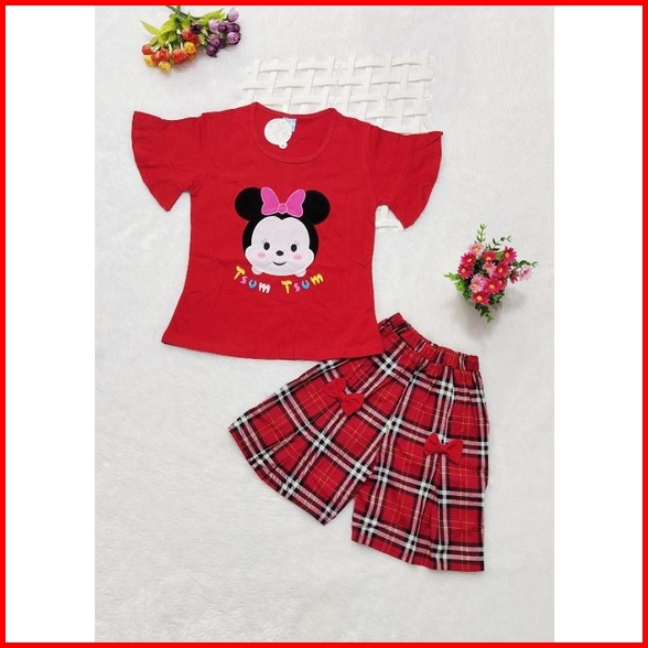 Setelan Anak Cewek Usia 1-10 Tahun Bordir Mouse Lucu Baju Anak Perempuan Celana Rok Kotak 1 2 3 4 5 6 7 8 9 10
