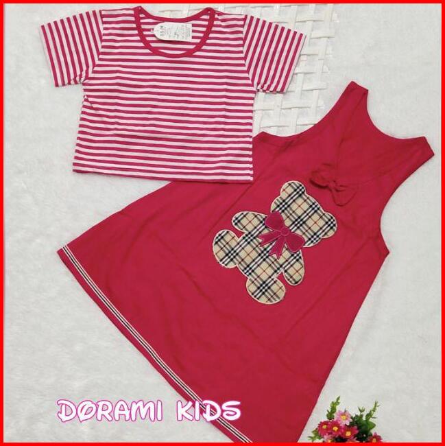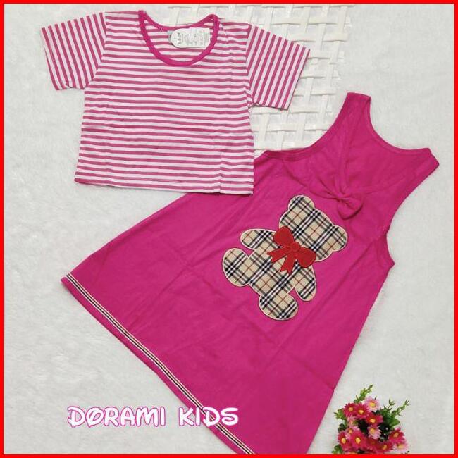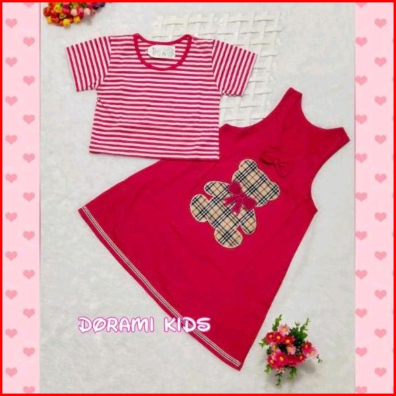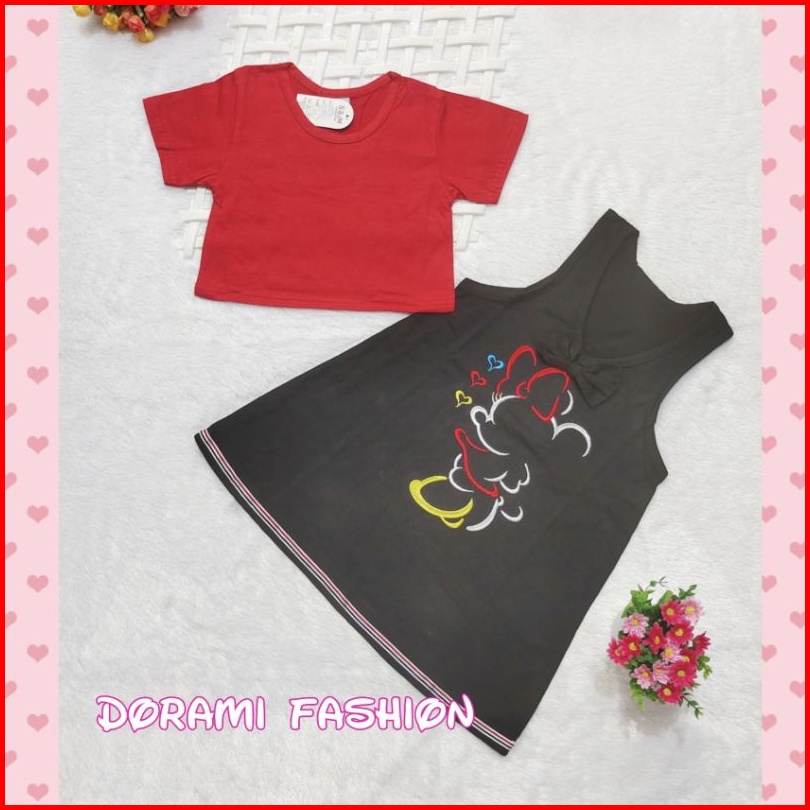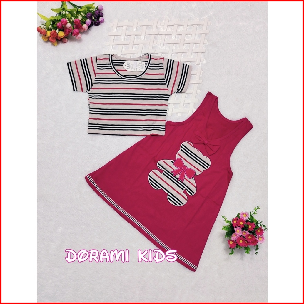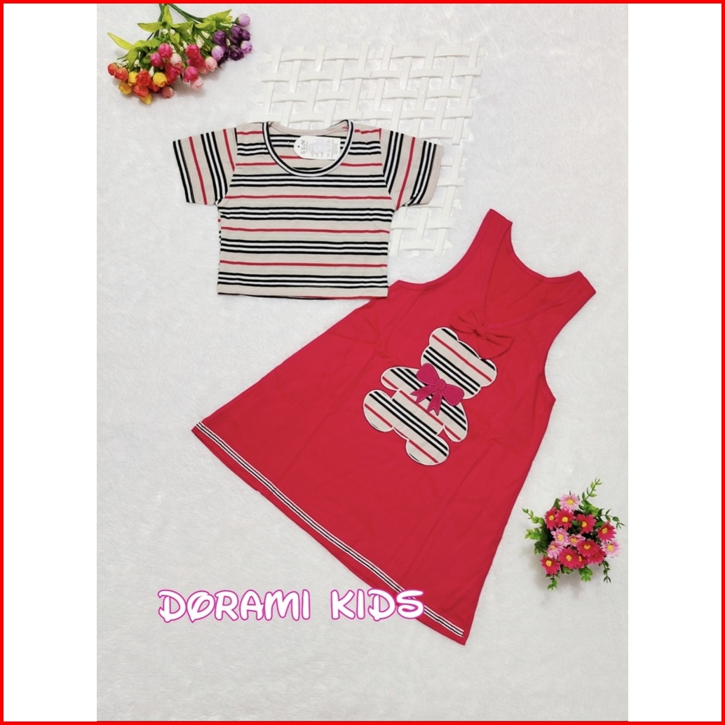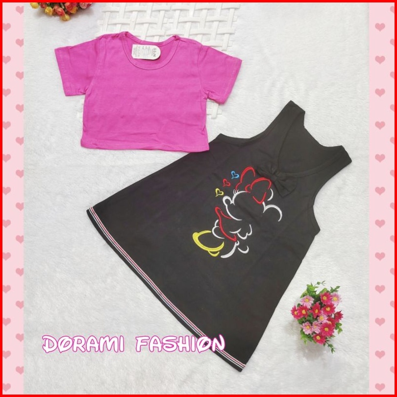 647 Dress Overall Anak Usia 1-8 Tahun Bordir Mouse Pita Bear Pita