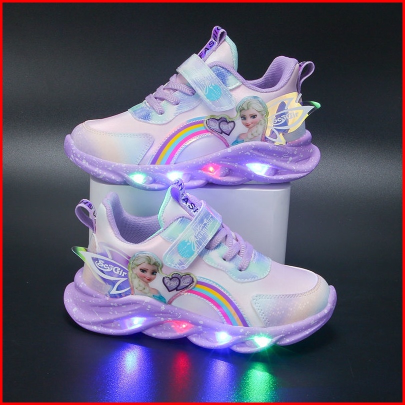 Promo 9.9 Happyoliver Princess Frozen Sepatu Sneakers Anak Laki Perempuan Led Menyala Import Sekolah 1-8 Tahun