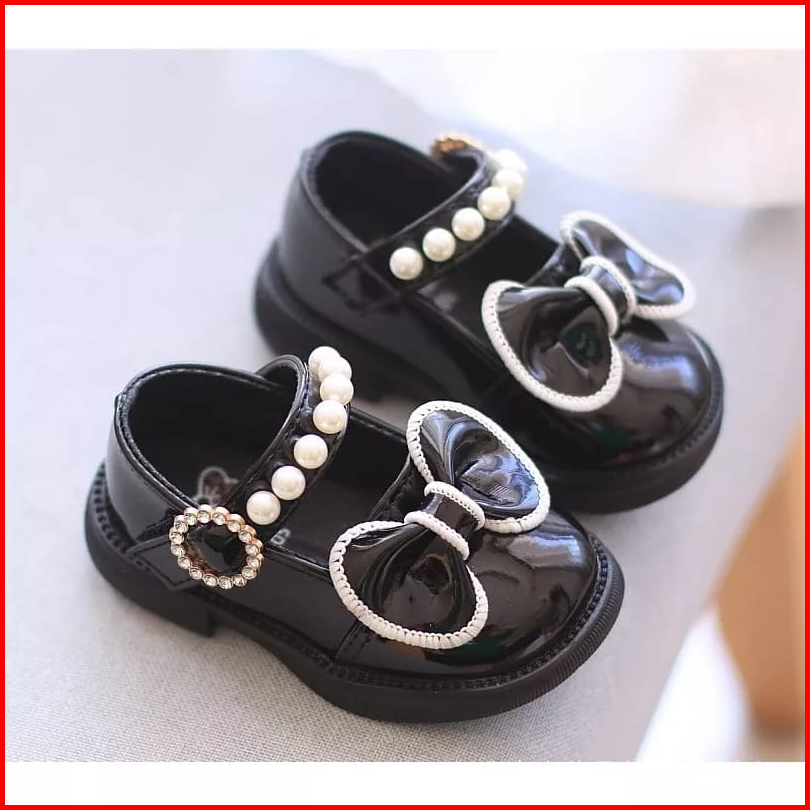 Sepatu Anak Perempuan Model Docmart Pita Tali Mutiara Lucu Sepatu Baby Shoes Cantik Murah