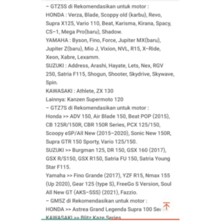 GM5Z grand/MIOSporty, GTZ7S satfu/Vario150, GTZ5S Beat/MX/MIOJ/