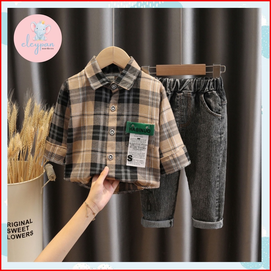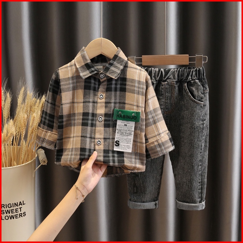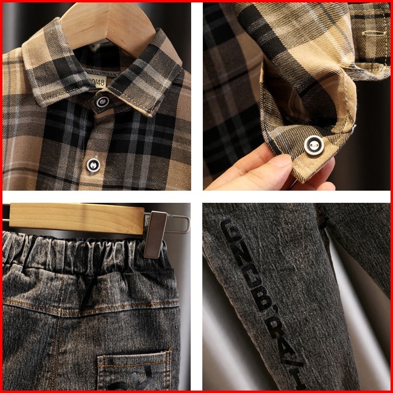 Setelan Kemeja Lengan Panjang Anak Laki Laki Celana Jeans Premium Quality