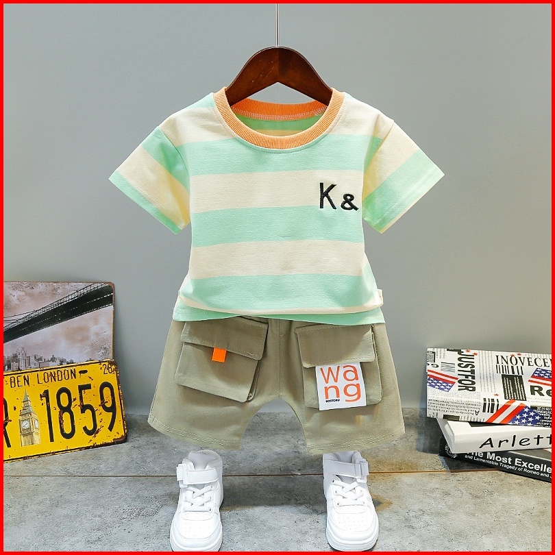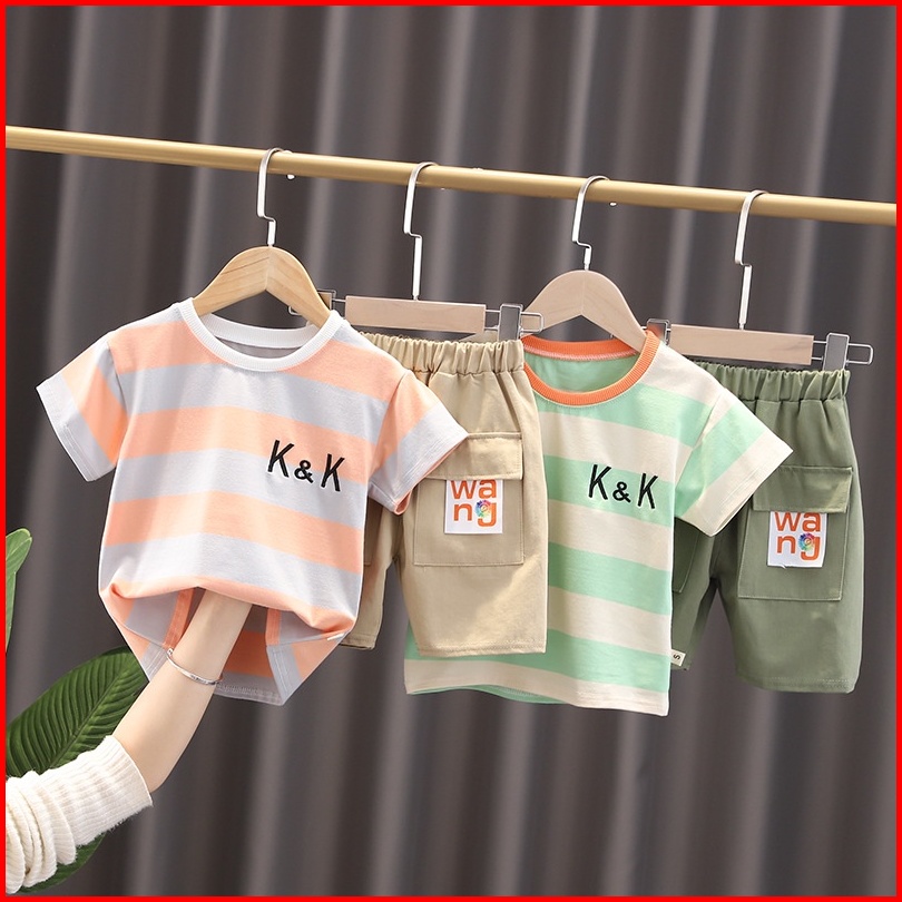 Promo 9.9 Heybaby Set K K Salur Ebv Setelan Kaos Anak Bayi Laki-laki Pendek 6bulan - 4tahun