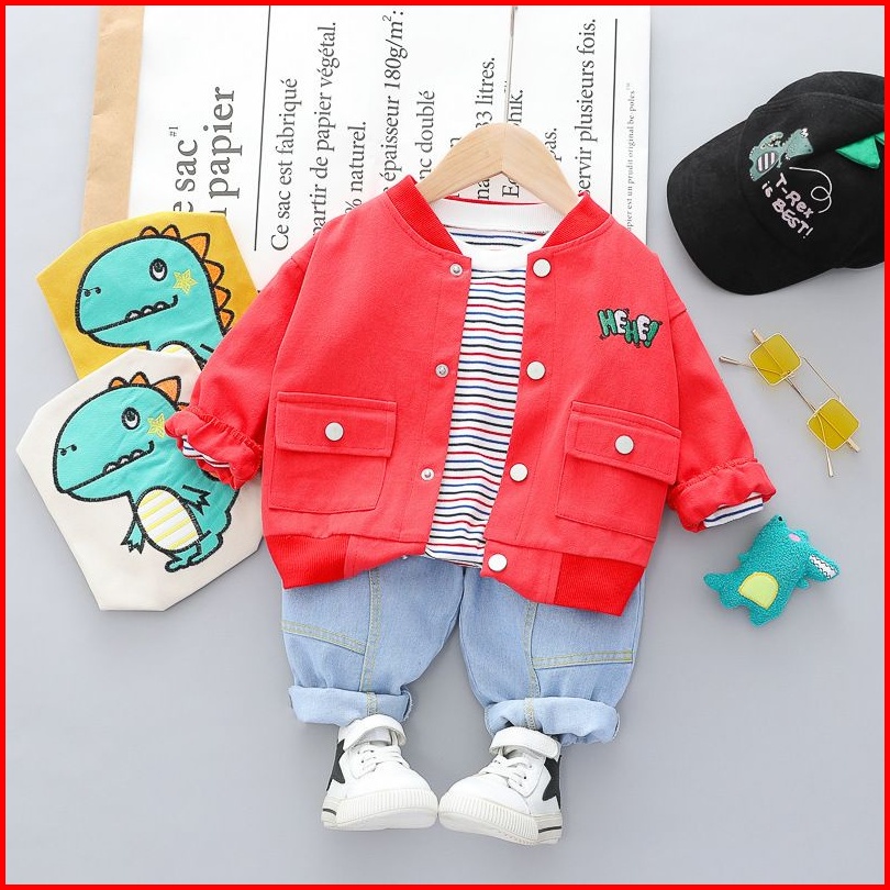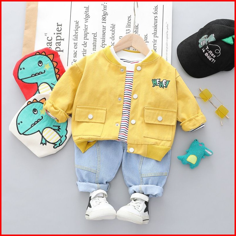 Promo 9.9 Heybaby Set Hey You Dino Ebv Setelan 3in1 Kemeja Bayi Anak Laki-laki Im Lengan Panjang Berkualitas