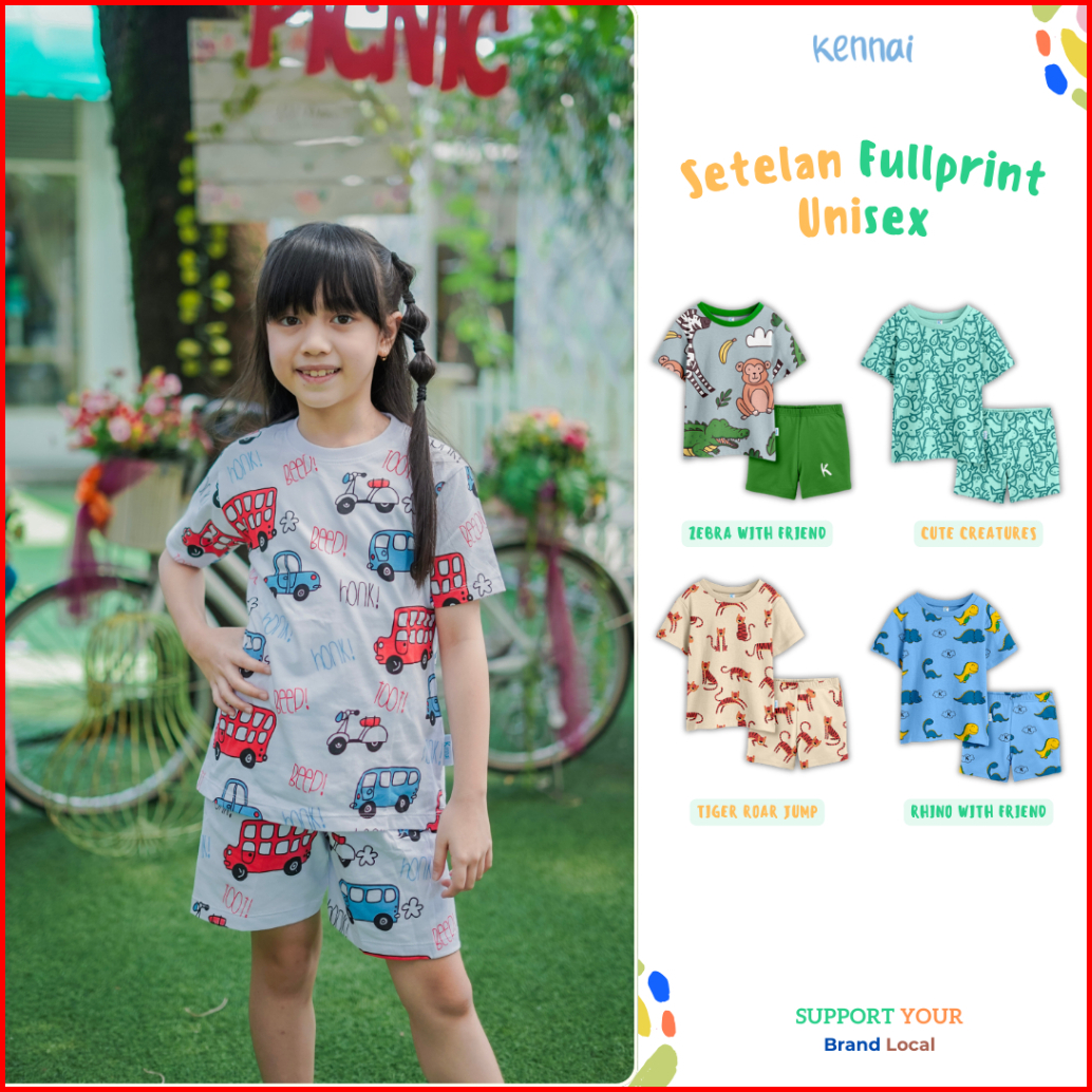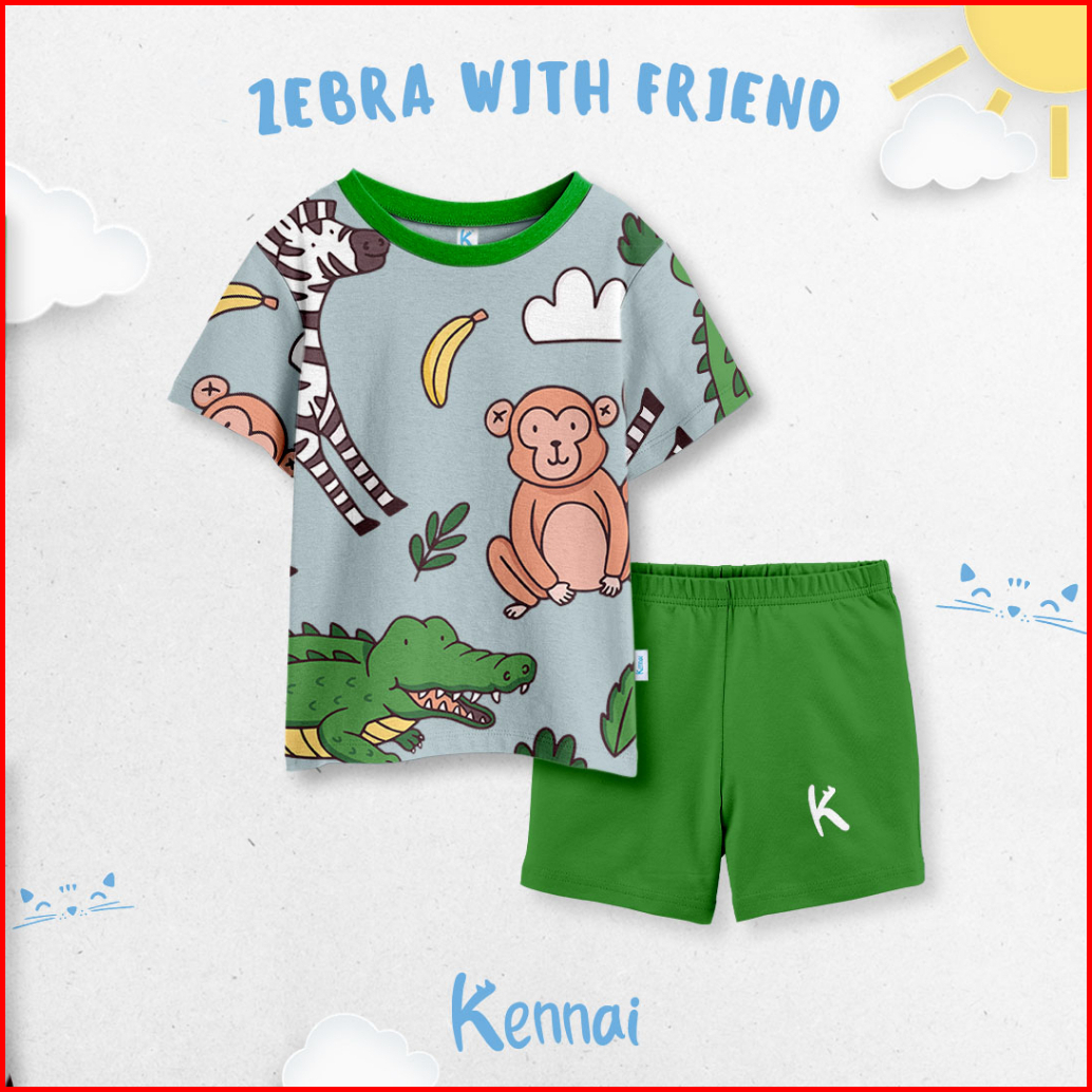 Kennai Setelan Anak Zebra With Friend Full Print Series Set Pendek Unisex