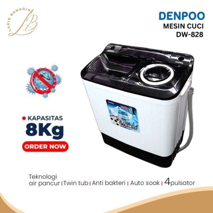 MESIN CUCI 2 TABUNG 8 KG DENPOO DW 828 4P DW 8907 BISA DIKIRIM KESELURUH INDONESIA