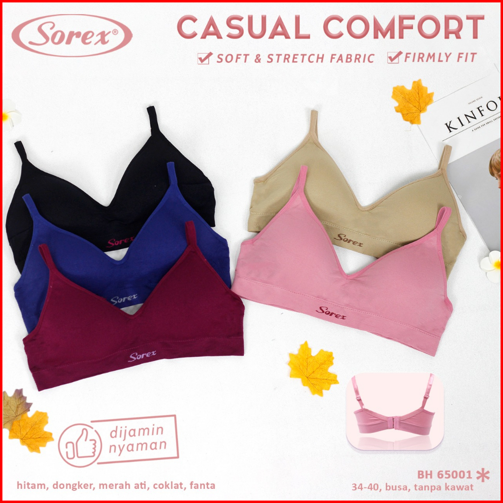 Sorex Bra 65001 Bh Tanpa Kawat Busa Tipis Cup Sedang Size 34-40 Kait 2 Sport Casual Comfort