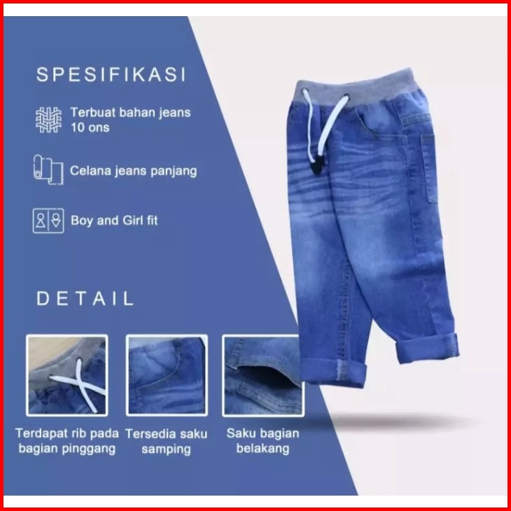 Celana Jeans Anak Laki - Laki 2-7 Tahun Panjang Slimfit Streach Mulur Warna Biru