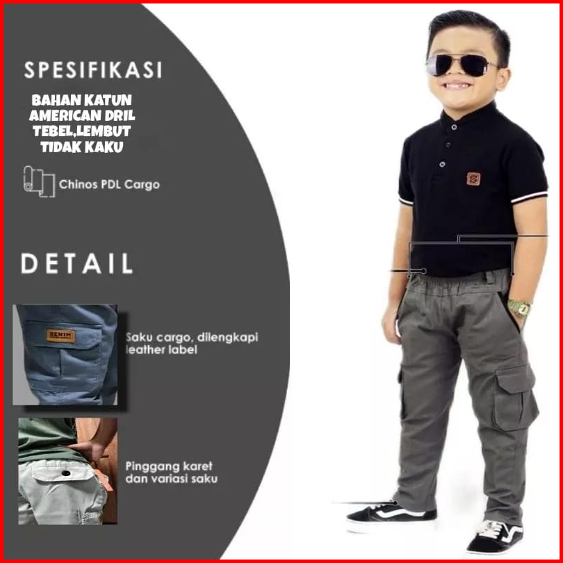 Celana Panjang Anak Cargo Umur 1 12 Tahun Bahan Katun Premium