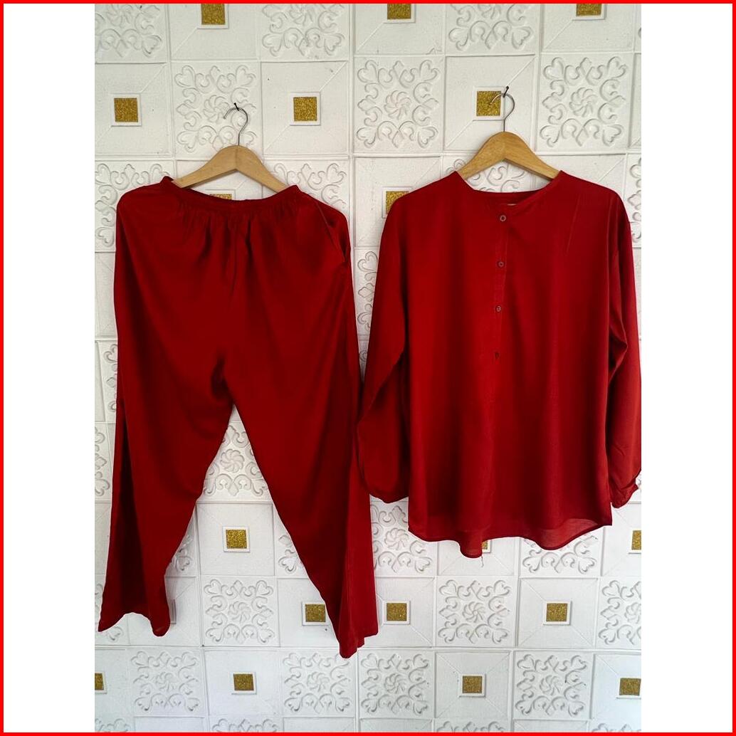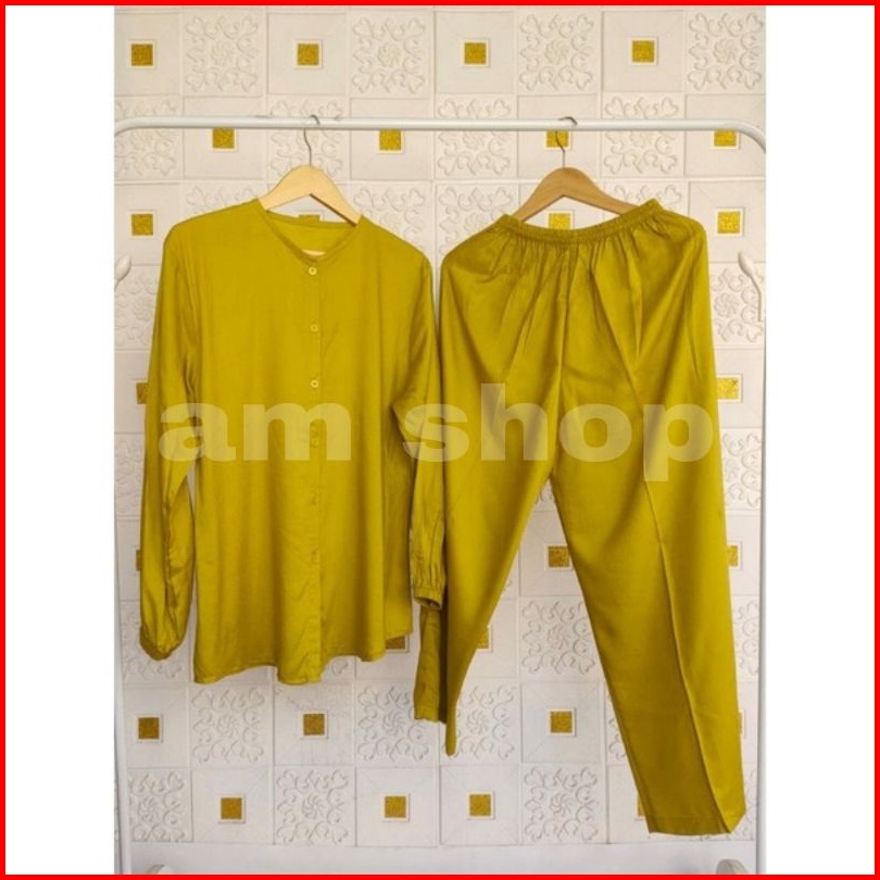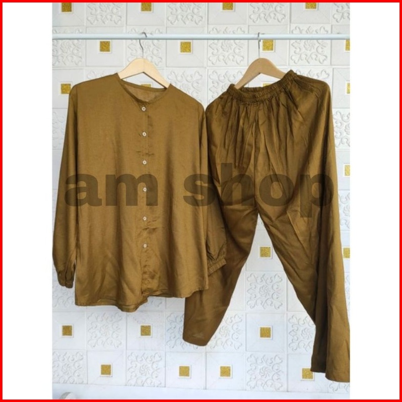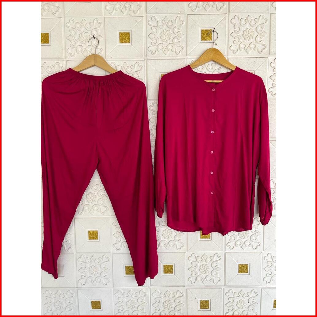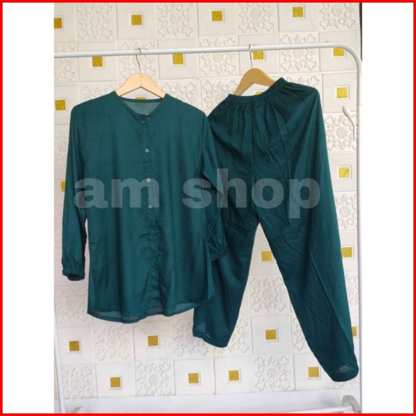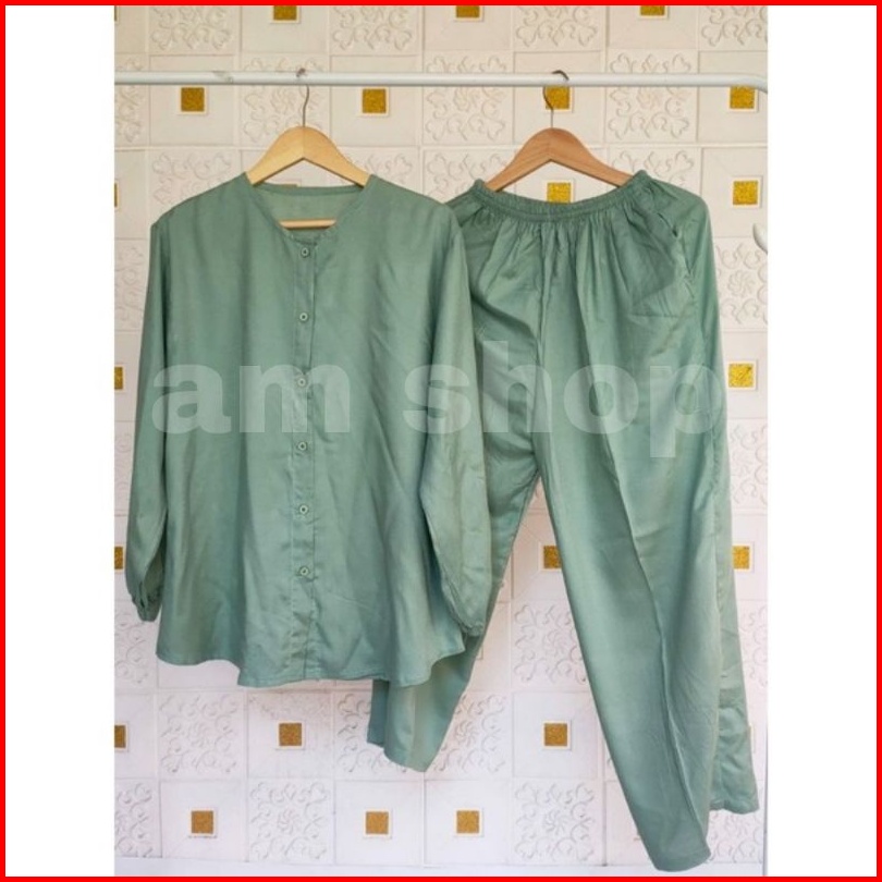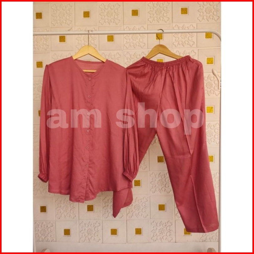 Pajamas Set Kemeja Dewasa Katun Rayon Tpo Polos Piyama Lengan Panjang