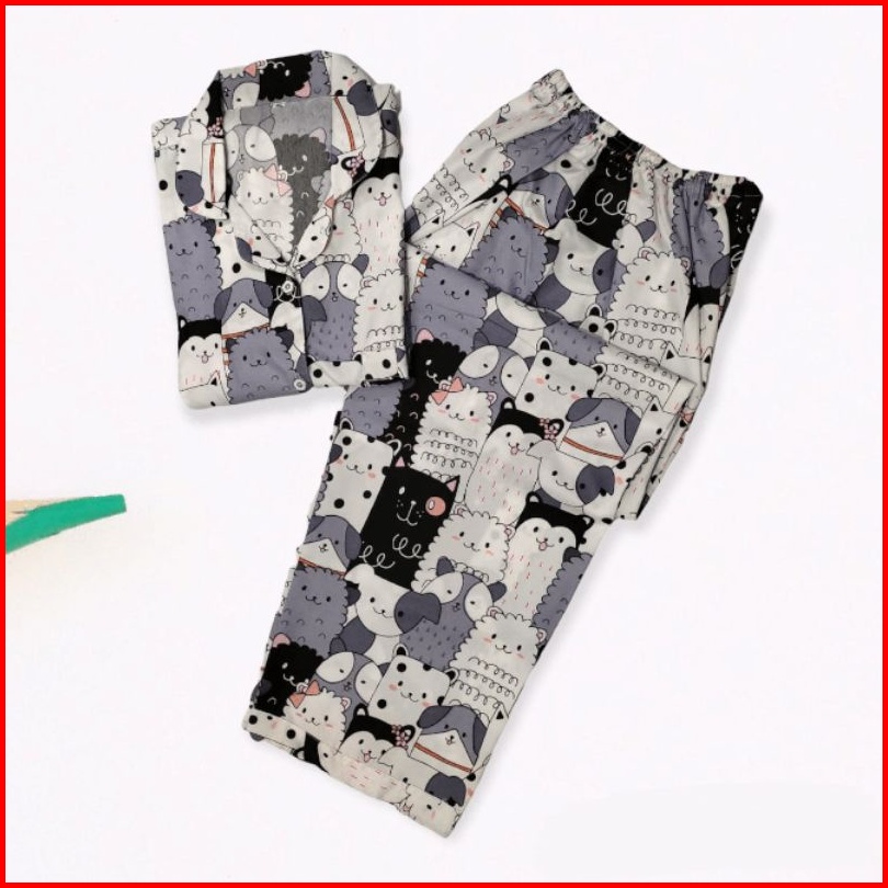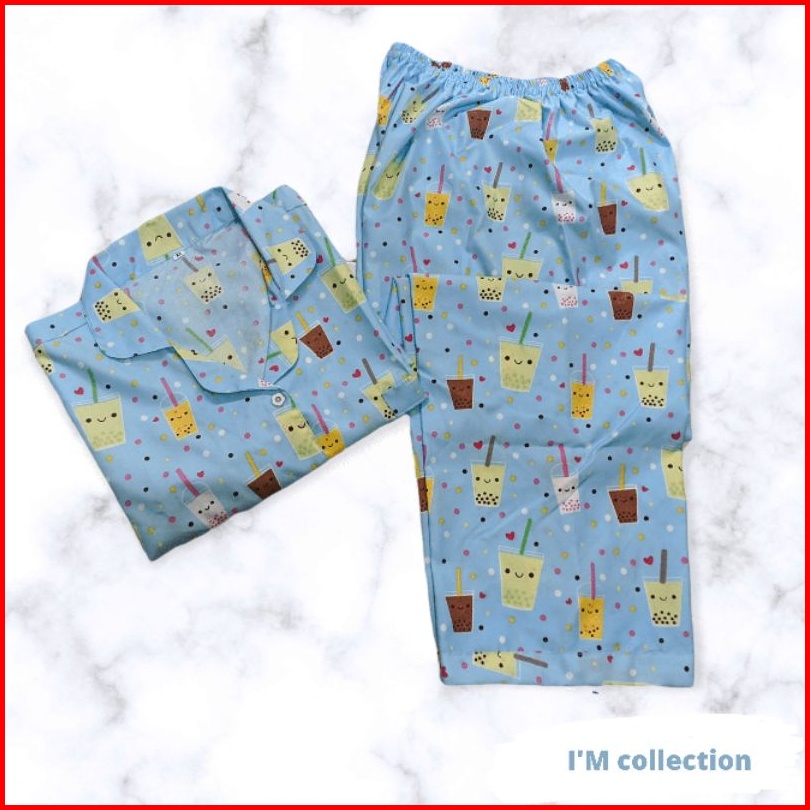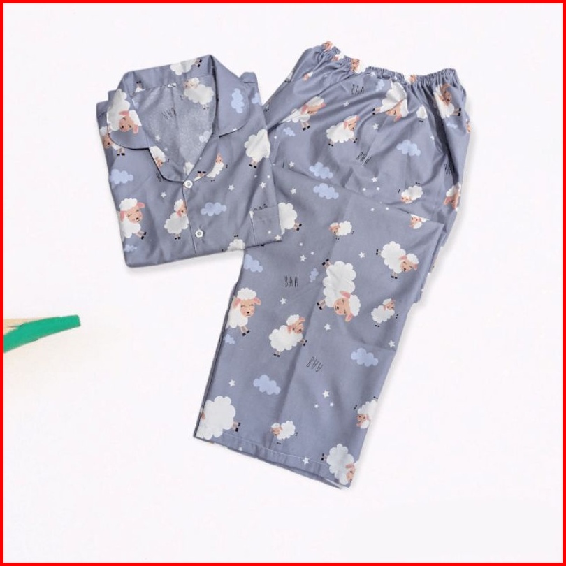 Baju Tidur Wanita Dewasa Piyama Setelan Lengan Pendek Celana Panjang