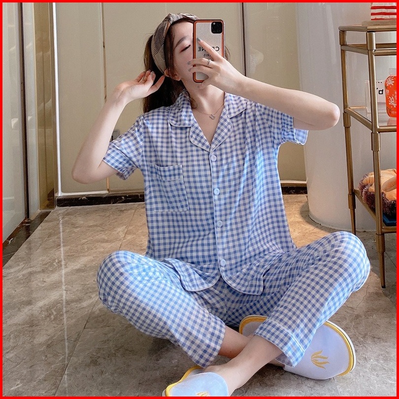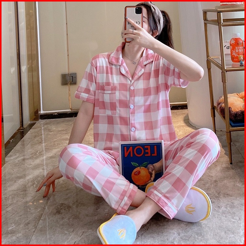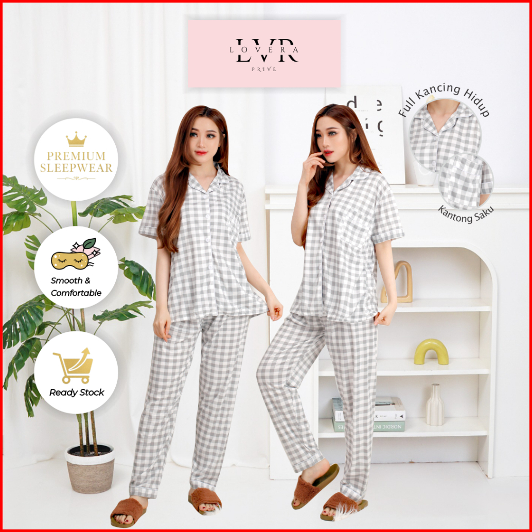 Lovera Baju Tidur Wanita Dewasa Piyama Set Kekinian Model Kemeja Cp Kotak Series Best Quality Sleepwear