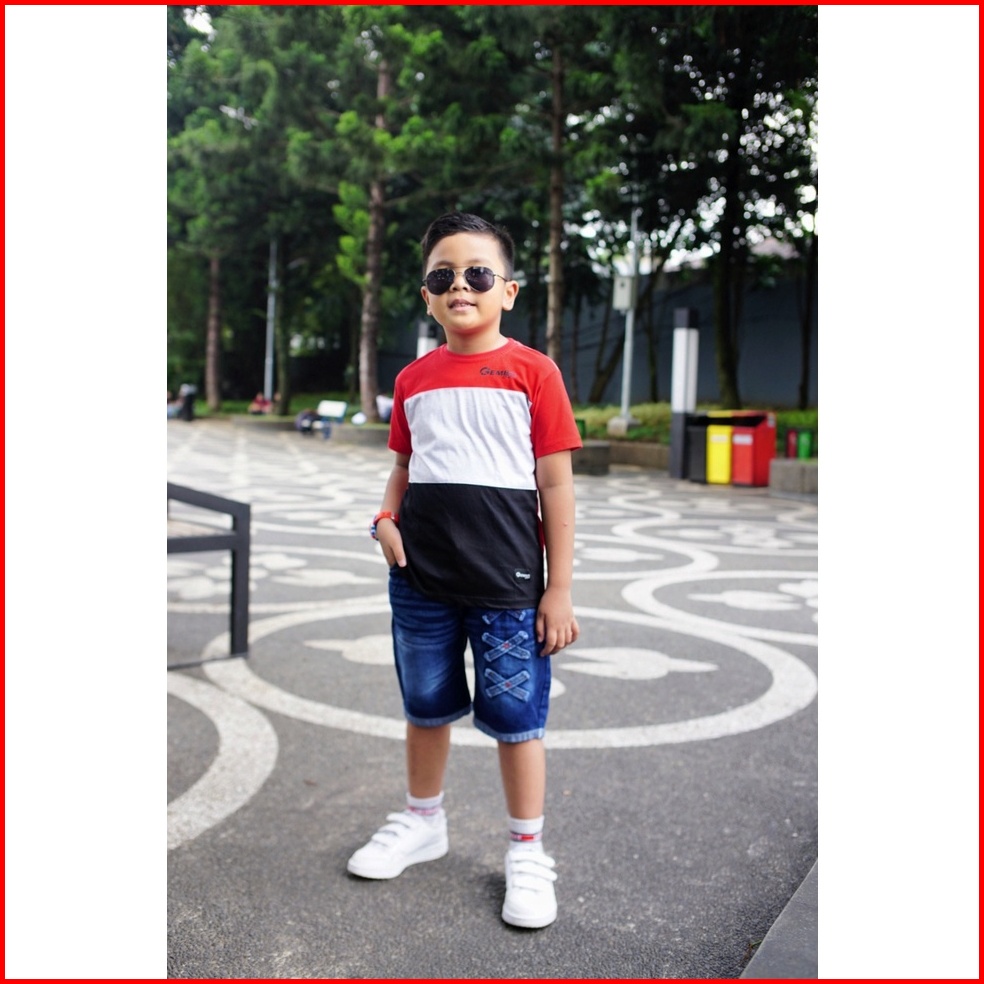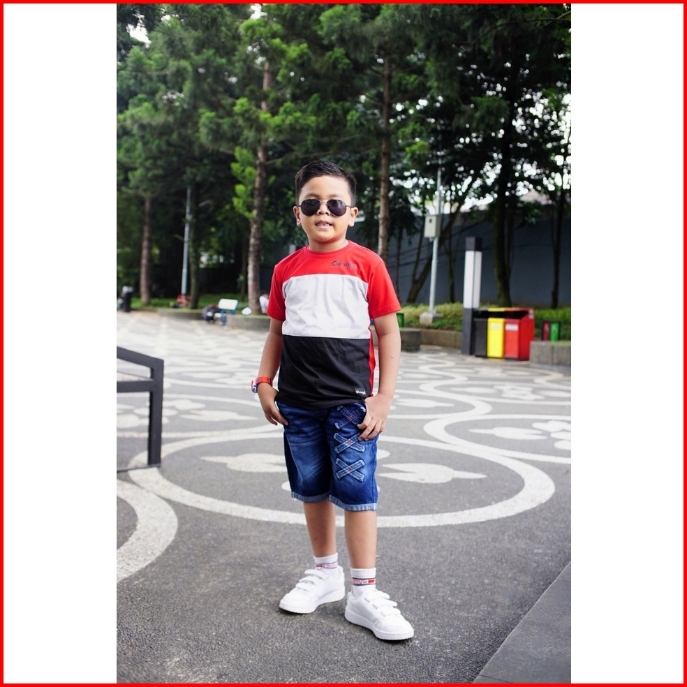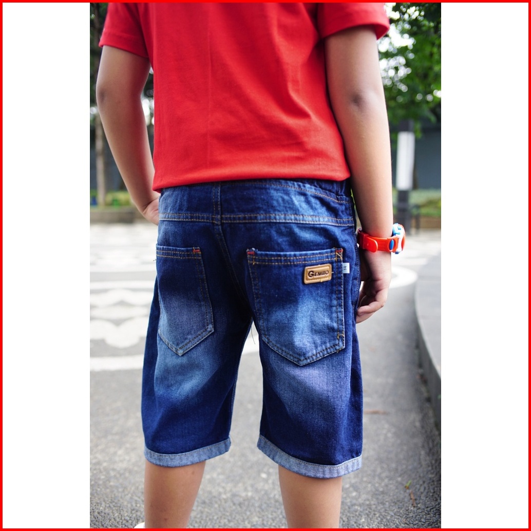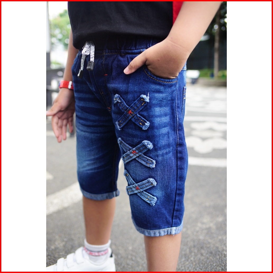 Celana Jeans Anak 2-10 Tahun - Celana Anak Laki-laki Jeans Pendek Biru Tua Silang - Gembo Kids