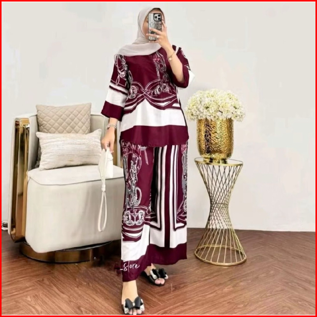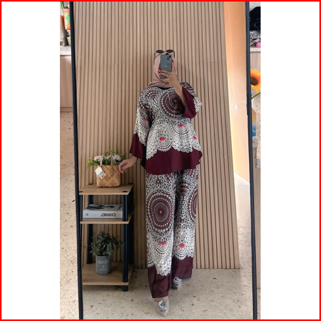 One Set Rayon Kekinian Pajamas Setelan Wanita Baju Set Piyama