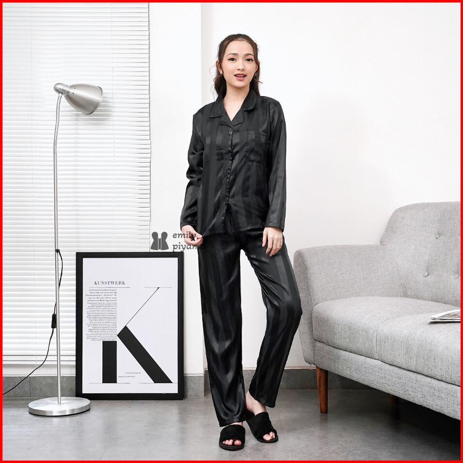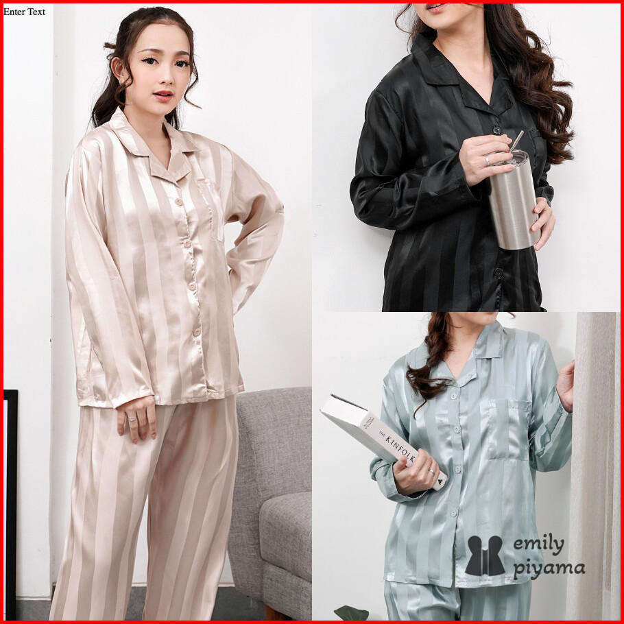 Emily Piyama Baju Tidur Piyama Satin Wanita Dewasa Model Garis Premium Pakaian Tidur Wanita Dewasa
