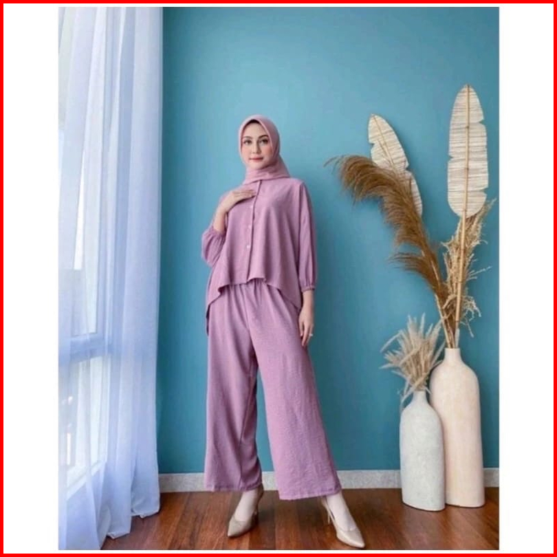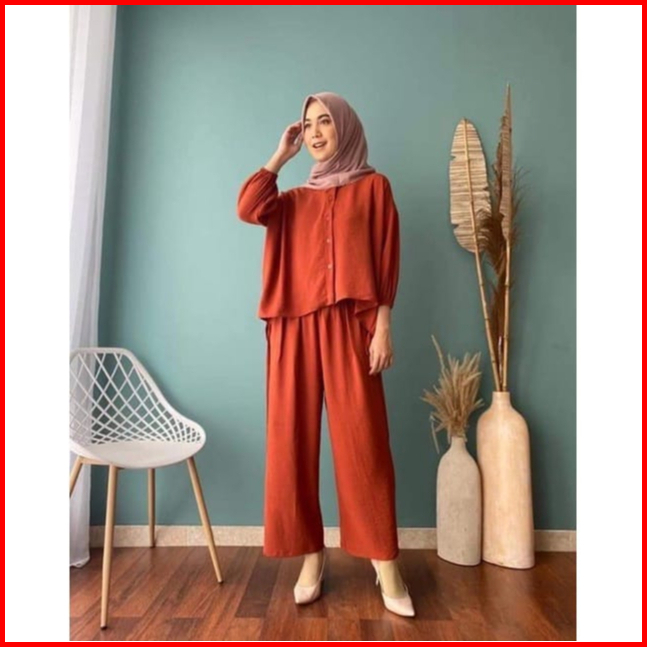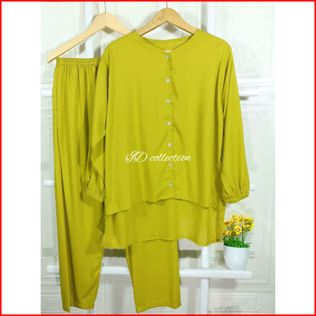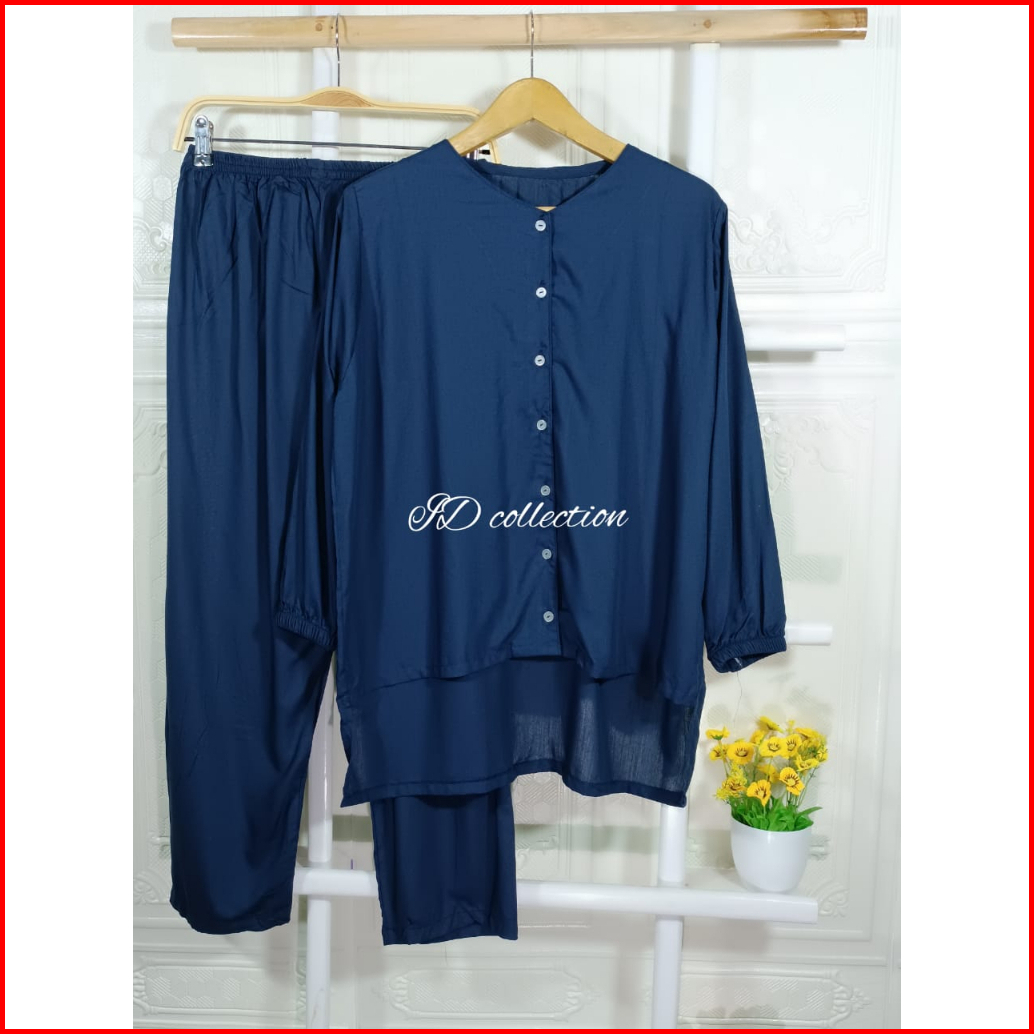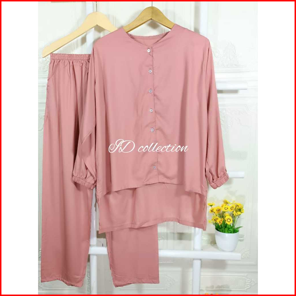 One Set Wanita Rayon Lengan Panjang Setcel Polos Busui Jumbo Kekinian
