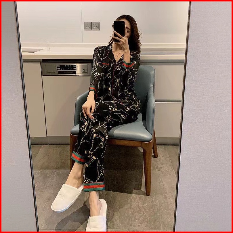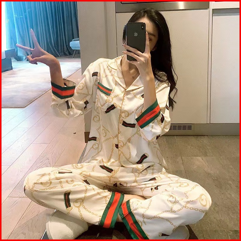 2025 Baru Musim Gugur Es Sutra Piyama Ukuran Besar Lengan Panjang Longgar Tipis Homewear Set