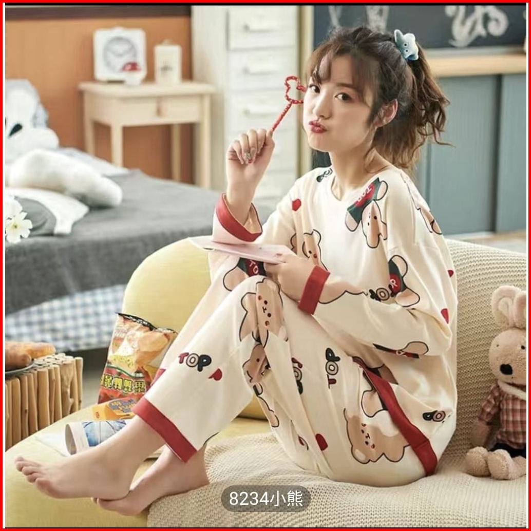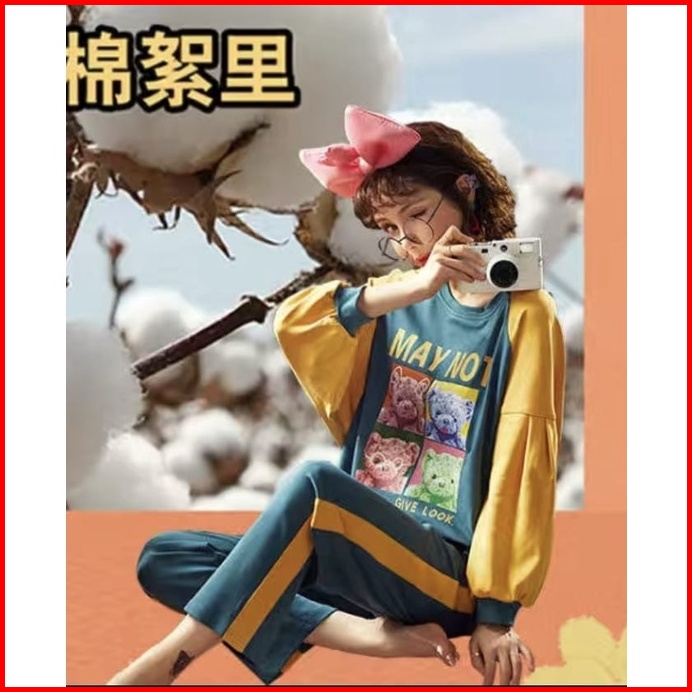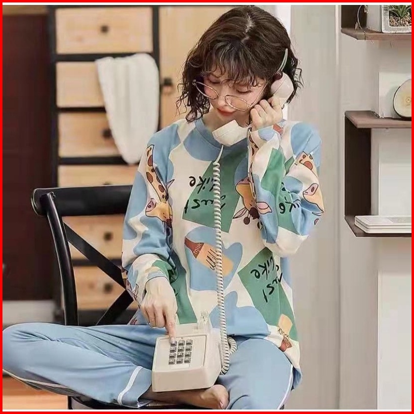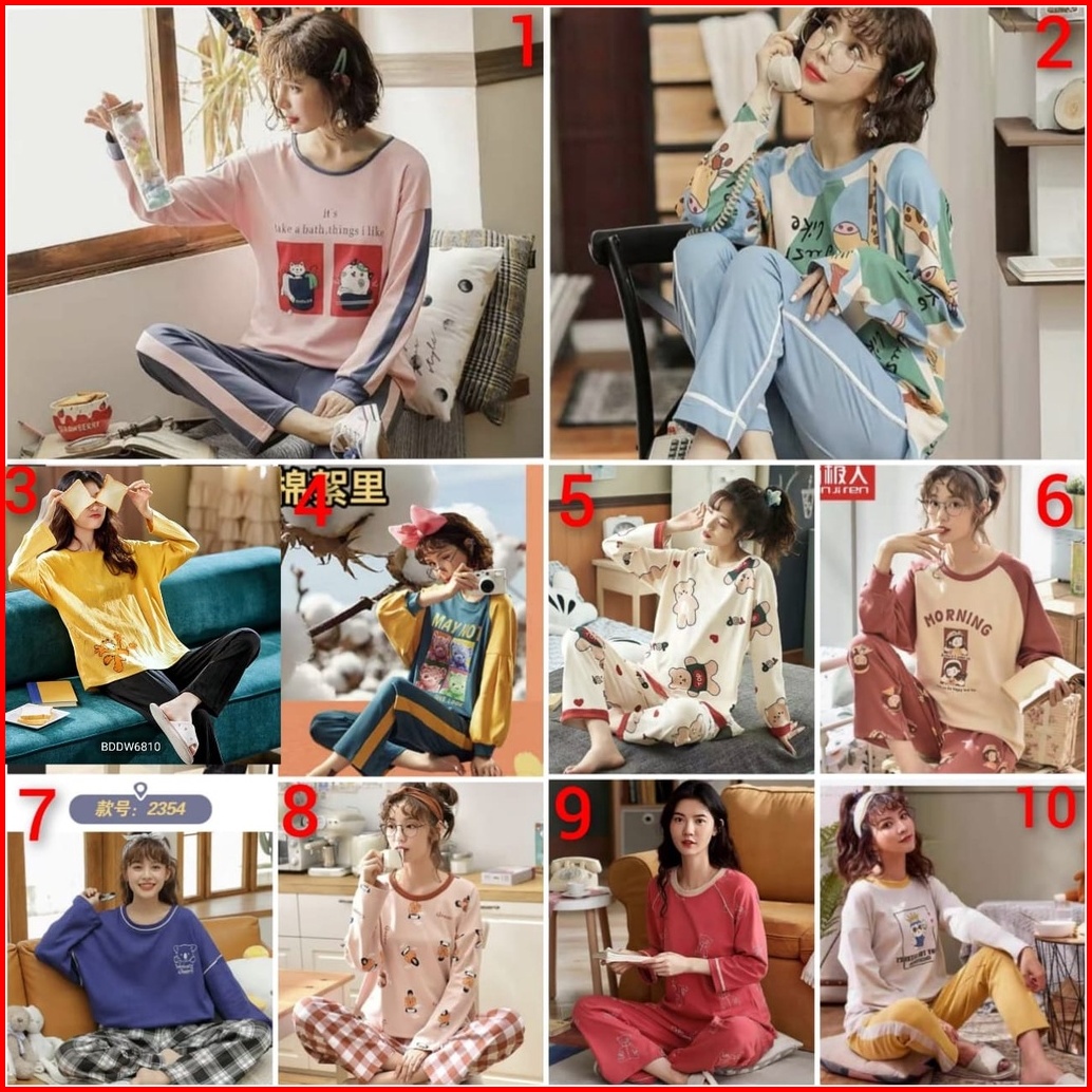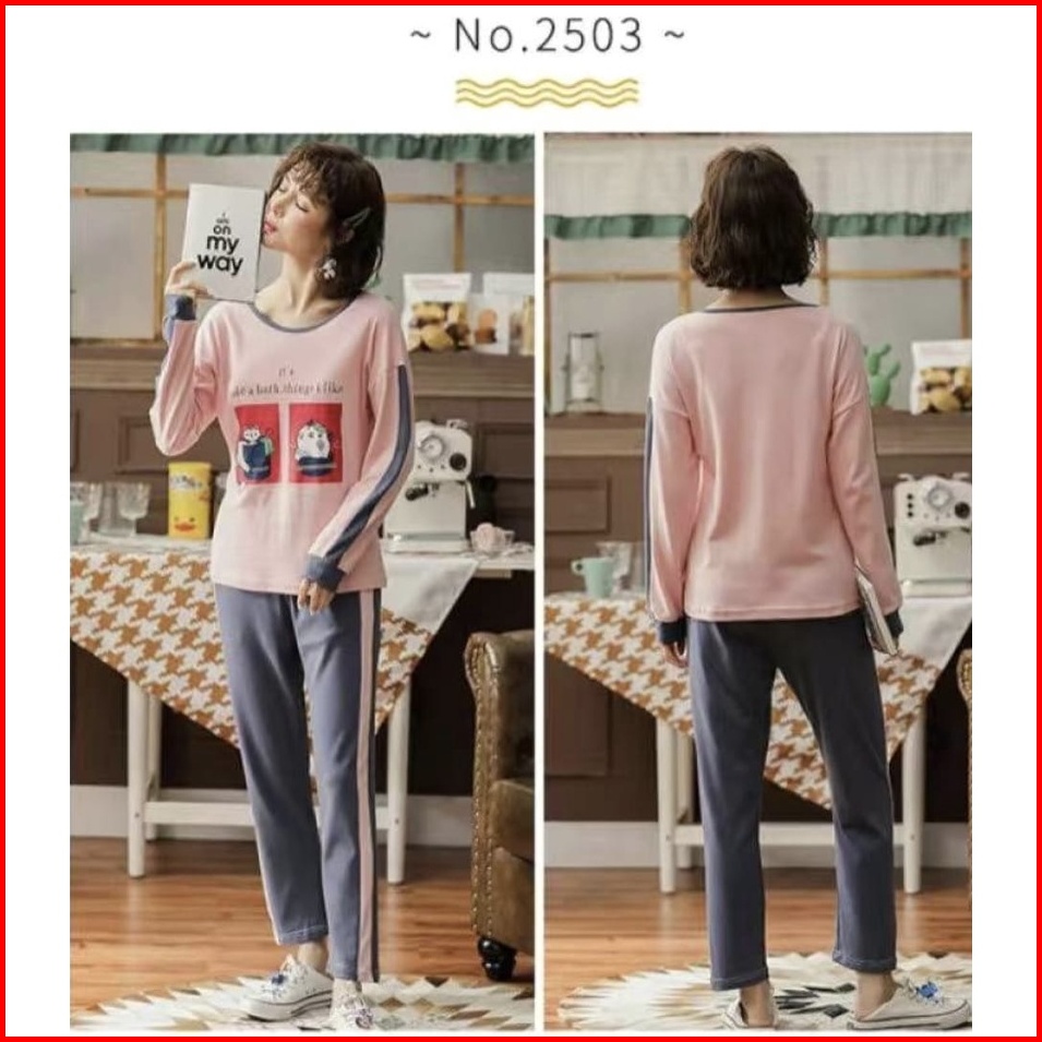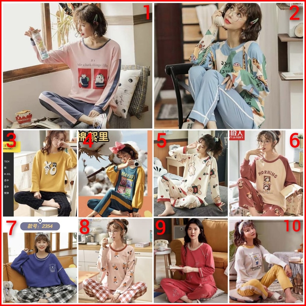 Baju Tidur Piyama Kaos Import Lengan Panjang Celana Panjang