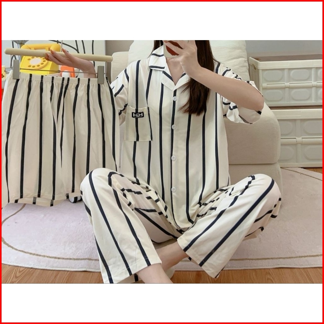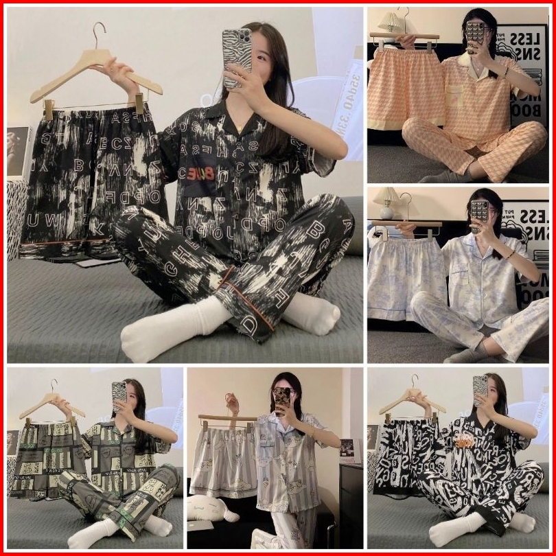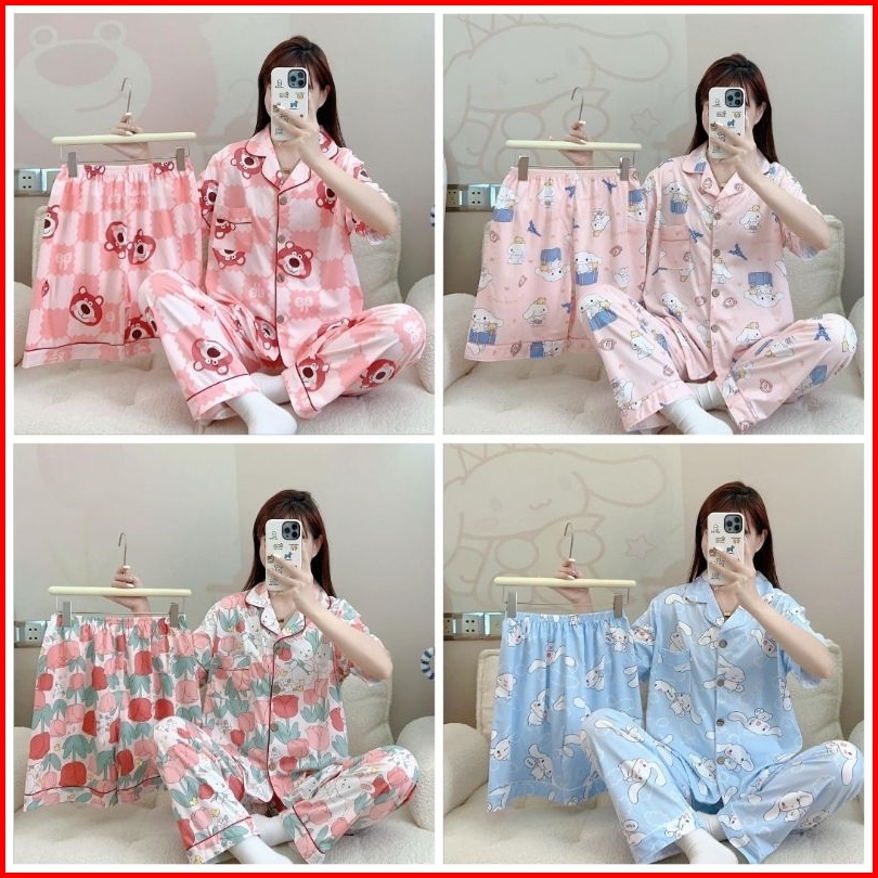 Piyama Wanita Import Setelan Piyama Import 3in1 Baju Tidur Wanita Murah