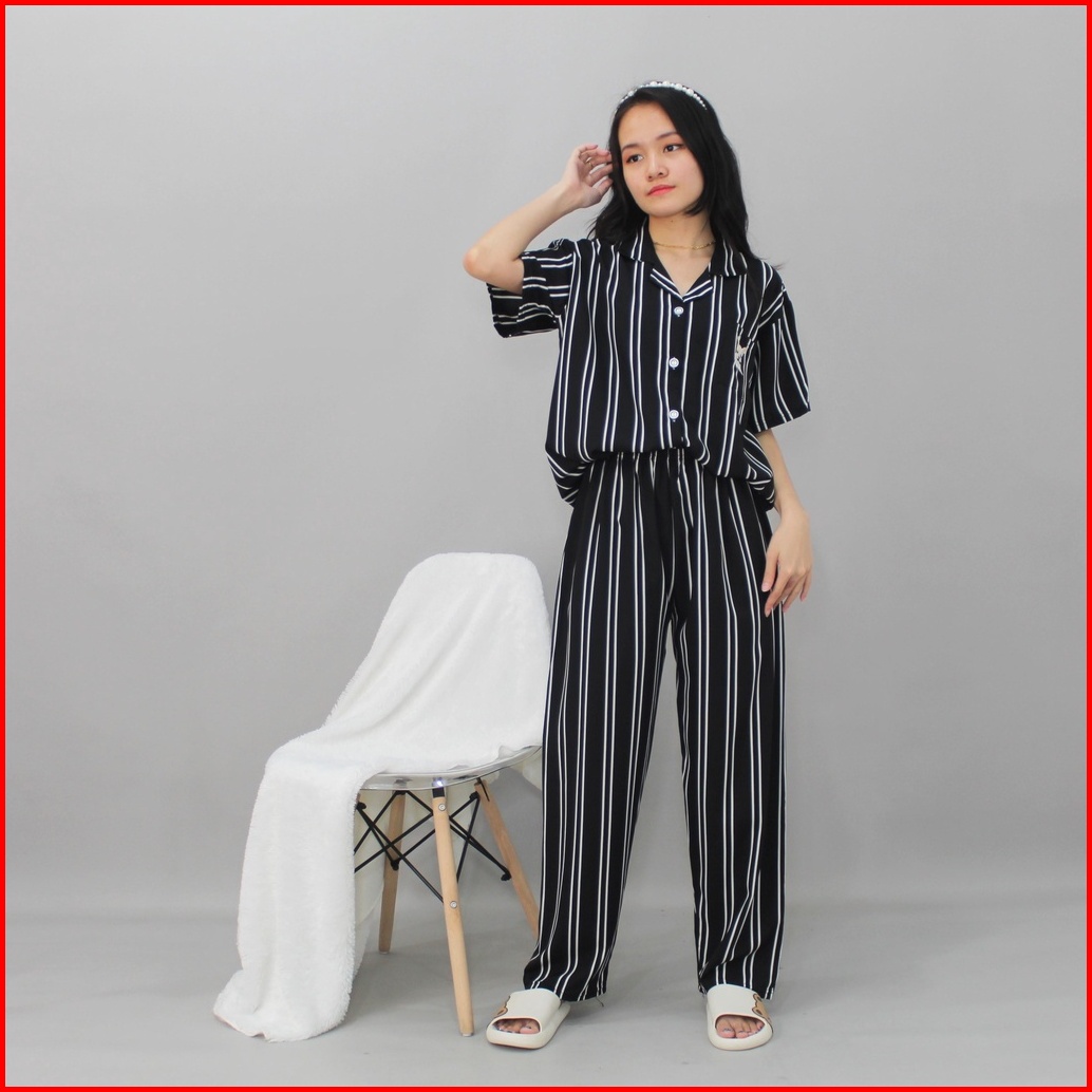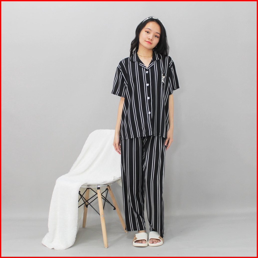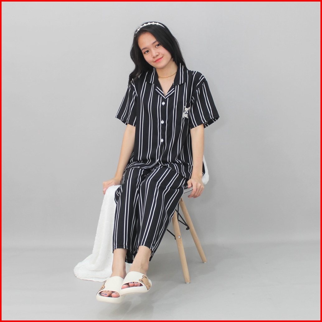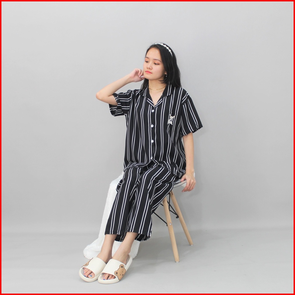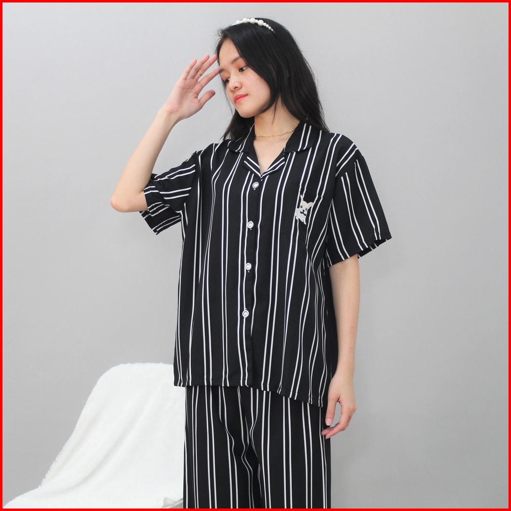 St Bella Piyama Powysuit Korea Bahan Satin Sutra Baju Tidur Wanita Dewasa Celana Panjang