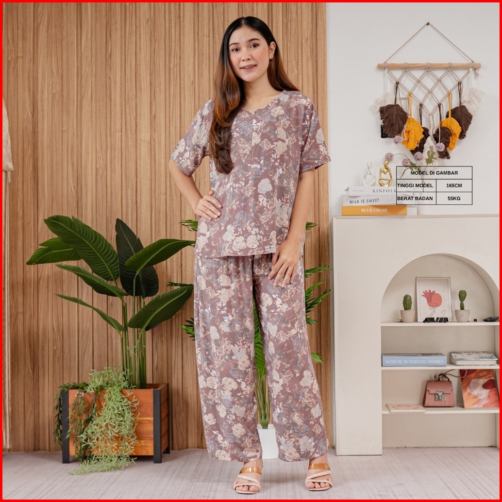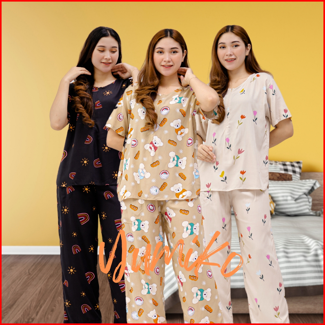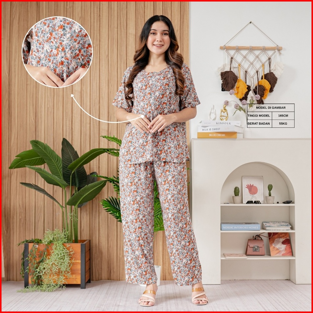 Yumiko Set Babydoll Busui Rayon Premium By Xaena Setelan Piyama Wanita Baju Tidur Celana Panjang
