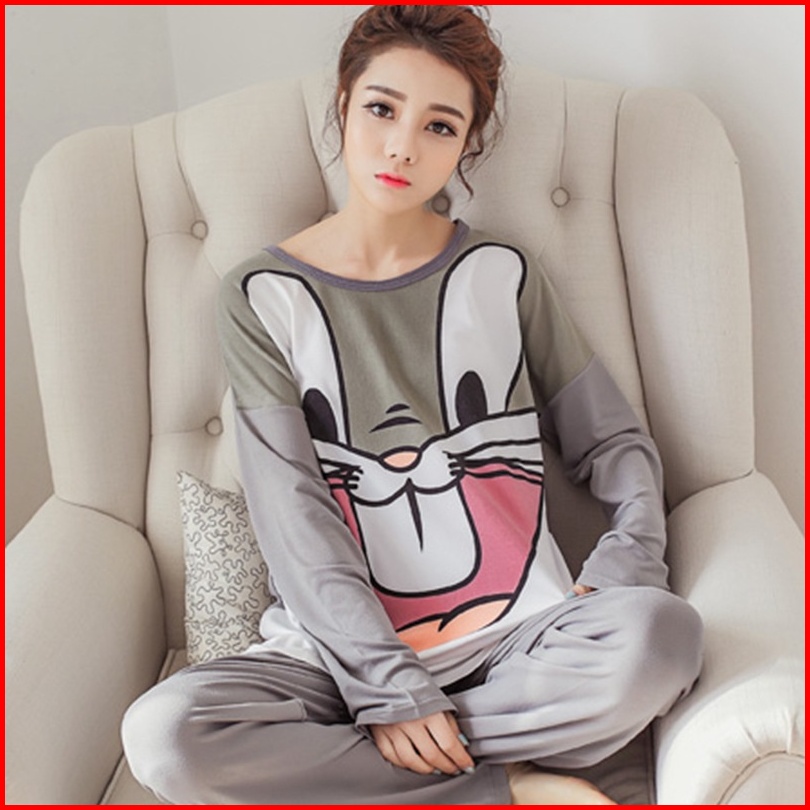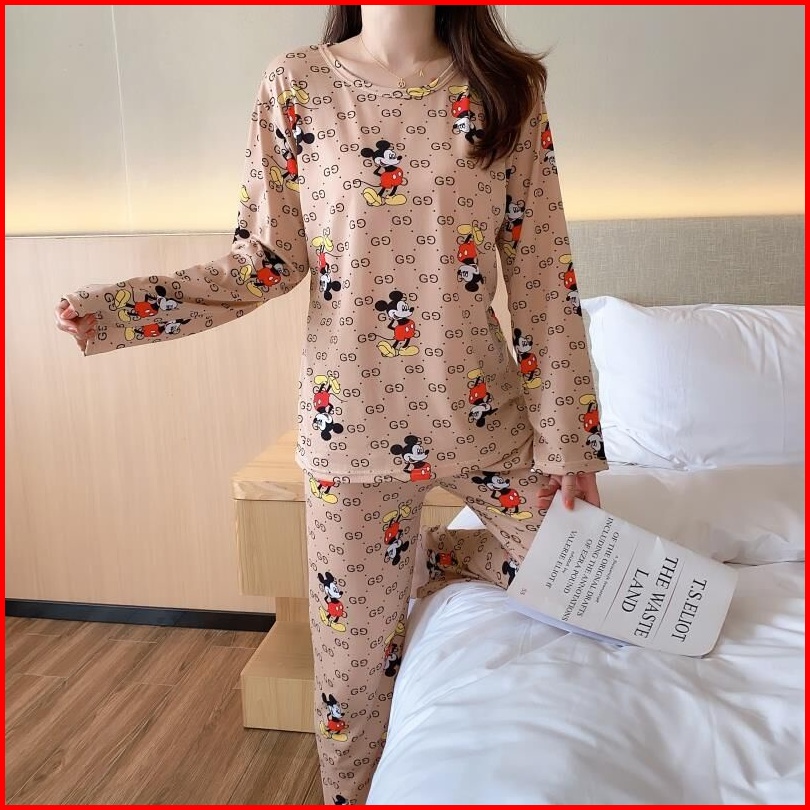 Yooyi Baju Tidur Wanita Dewasa Lengan Panjang Celana Panjang Piyama Setelan Perempuan Remaja Joger Motif Kartun Lucu 008
