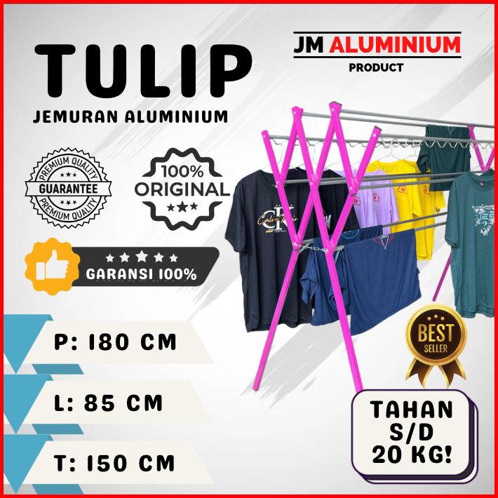 Jemuran Baju Aluminium Tulip Warna - 1 8 M 180 Cm