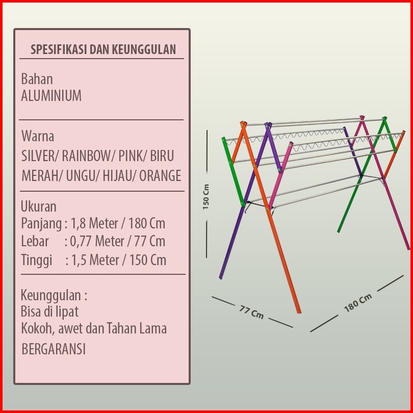 ALUMINIUM MERAH, ALUMINIUM BIRU, ALUMINIUM PINK, ALUMINIUM RAINBOW, ALUMINIUM GREEN, ALUMINIUM SILVER, JEMURAN SAYAP, RAK HANDUK, ALUMUNIUM FULL BLACK, VIOLET