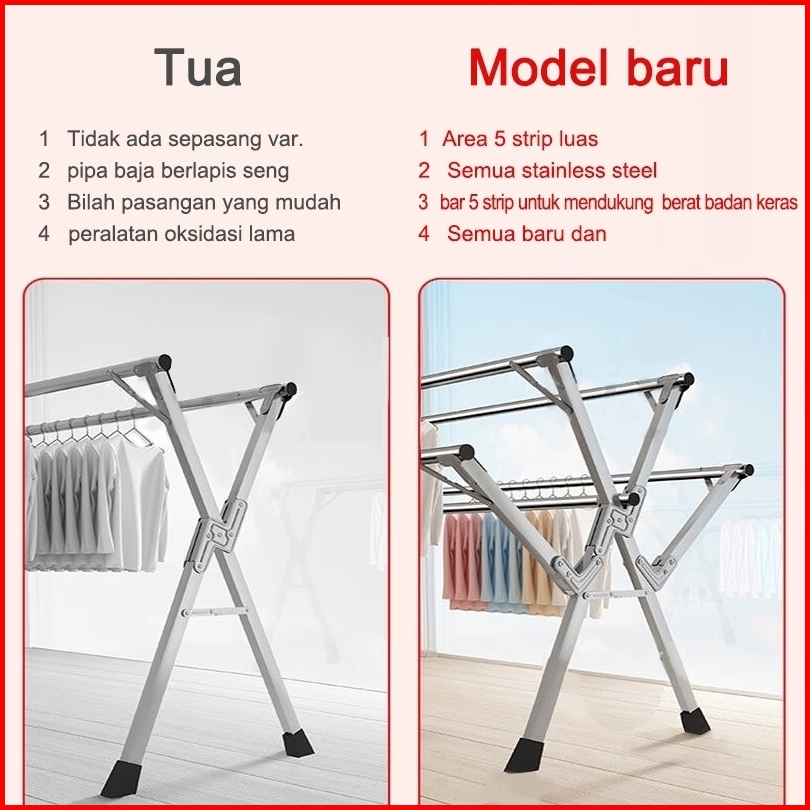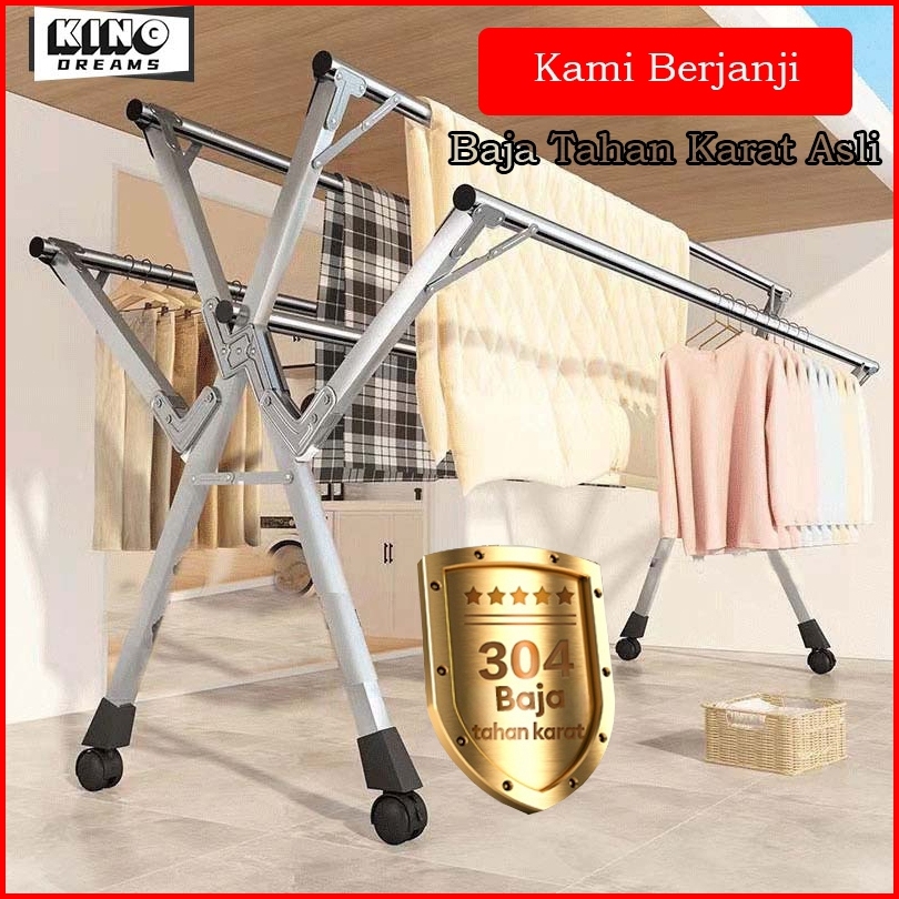 King Dreams 304 Jemuran Baju Lipat Stainless Steel Jemuran Pakaian Basah Tahan Karat Jemuran Pakaian Outdoor Indoor