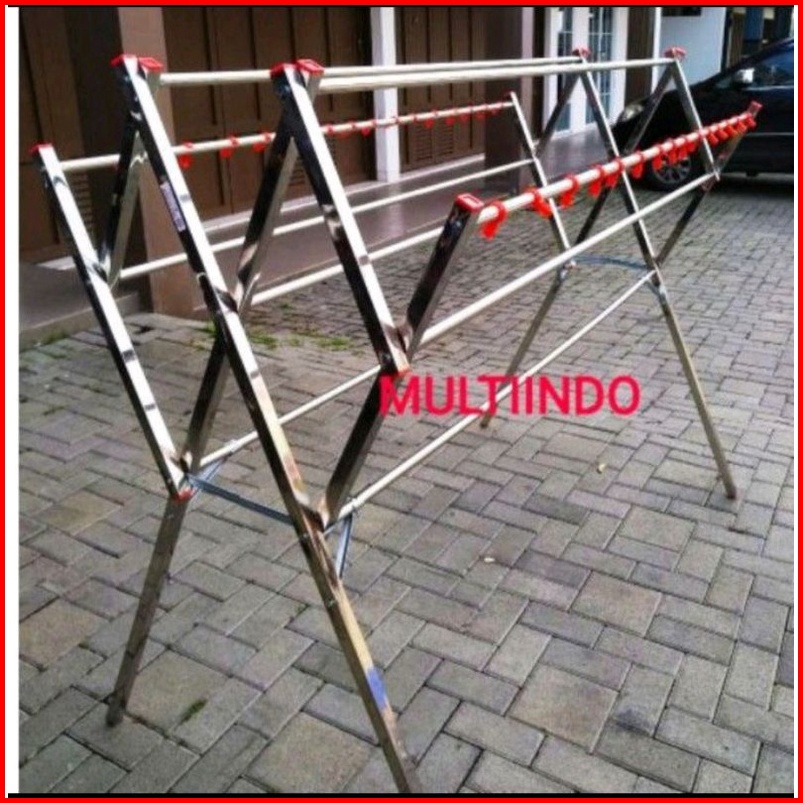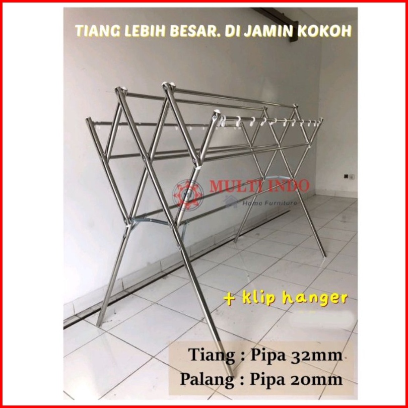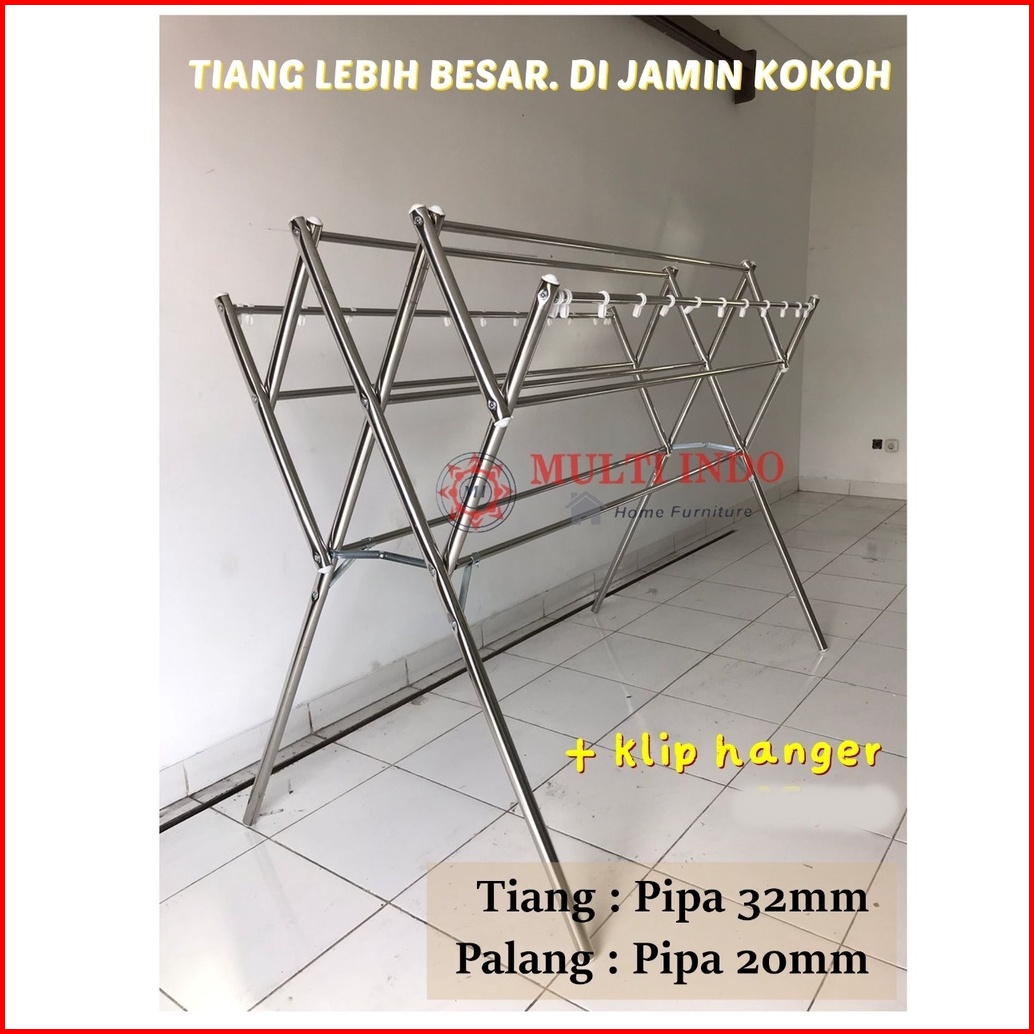 Jemuran Baju Stainless Steel Multi Bulat Tiang Besar 180 Cm Hanger Kuat Dan Kokoh