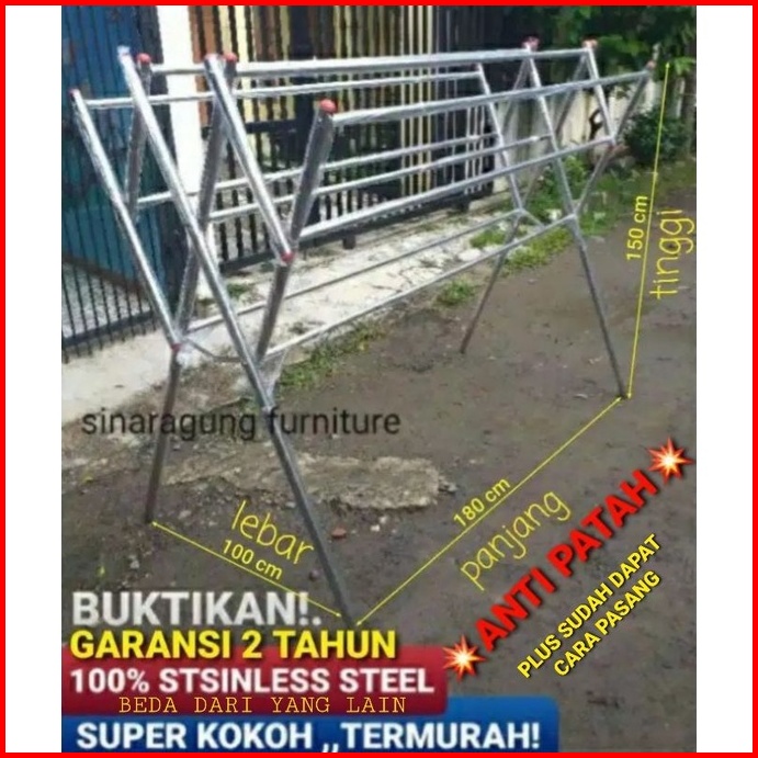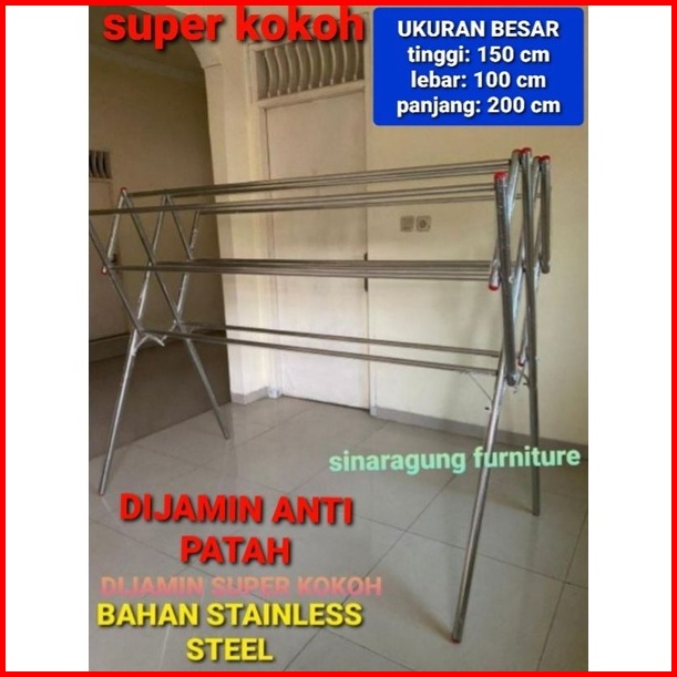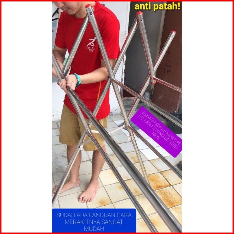 Jemuran Baju Tinggi Stainless Steel Asli 100 No.1 Anti Patah Super Tebal