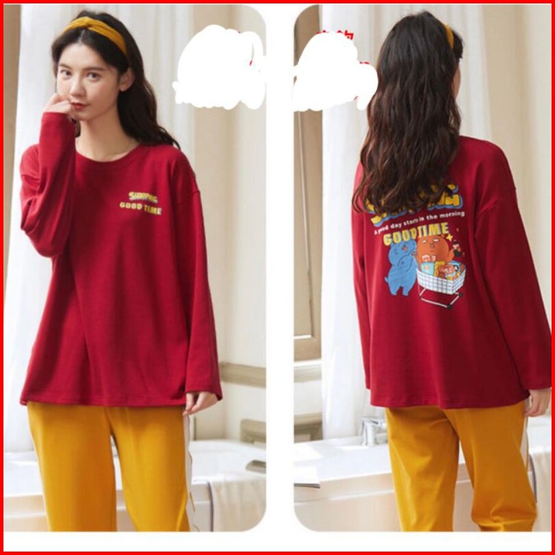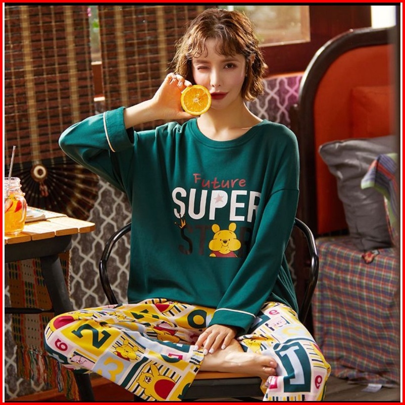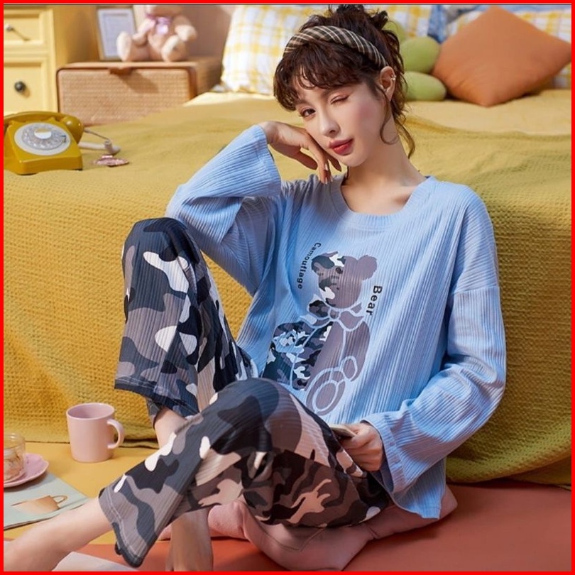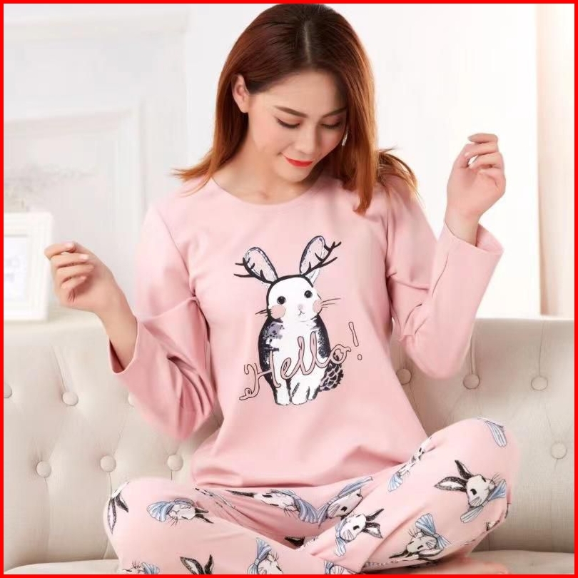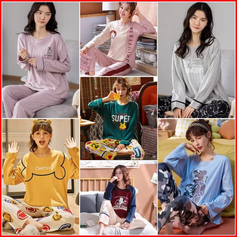 Baju Tidur Wanita Set Piyama Wanita Panjang Kaos Import