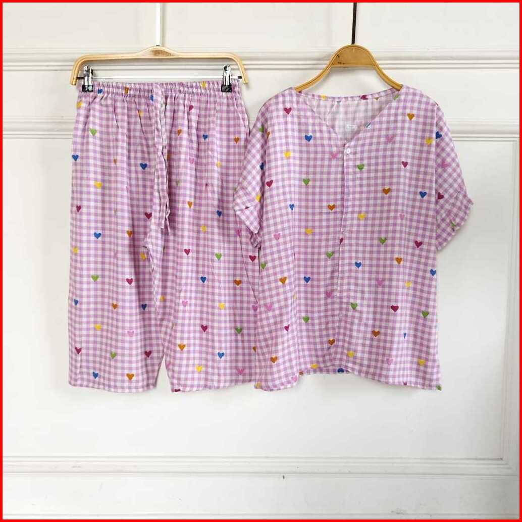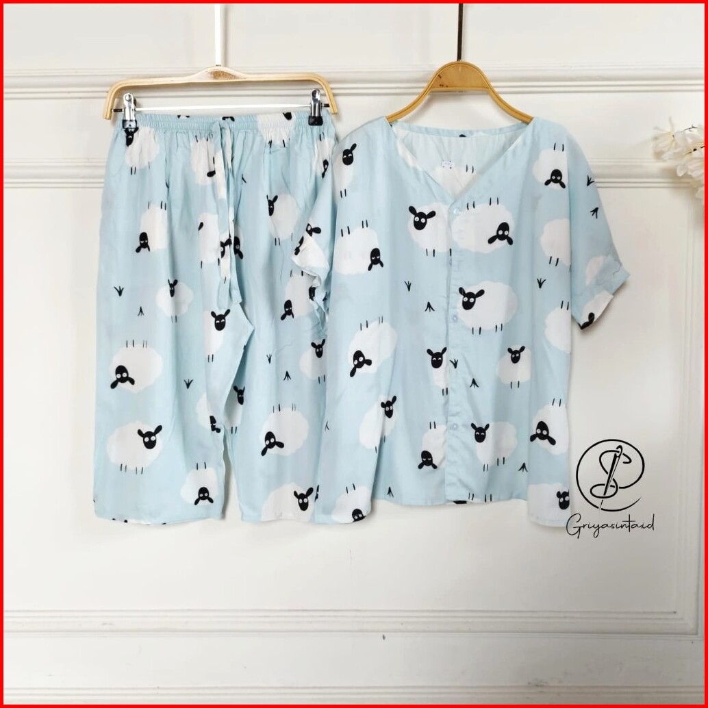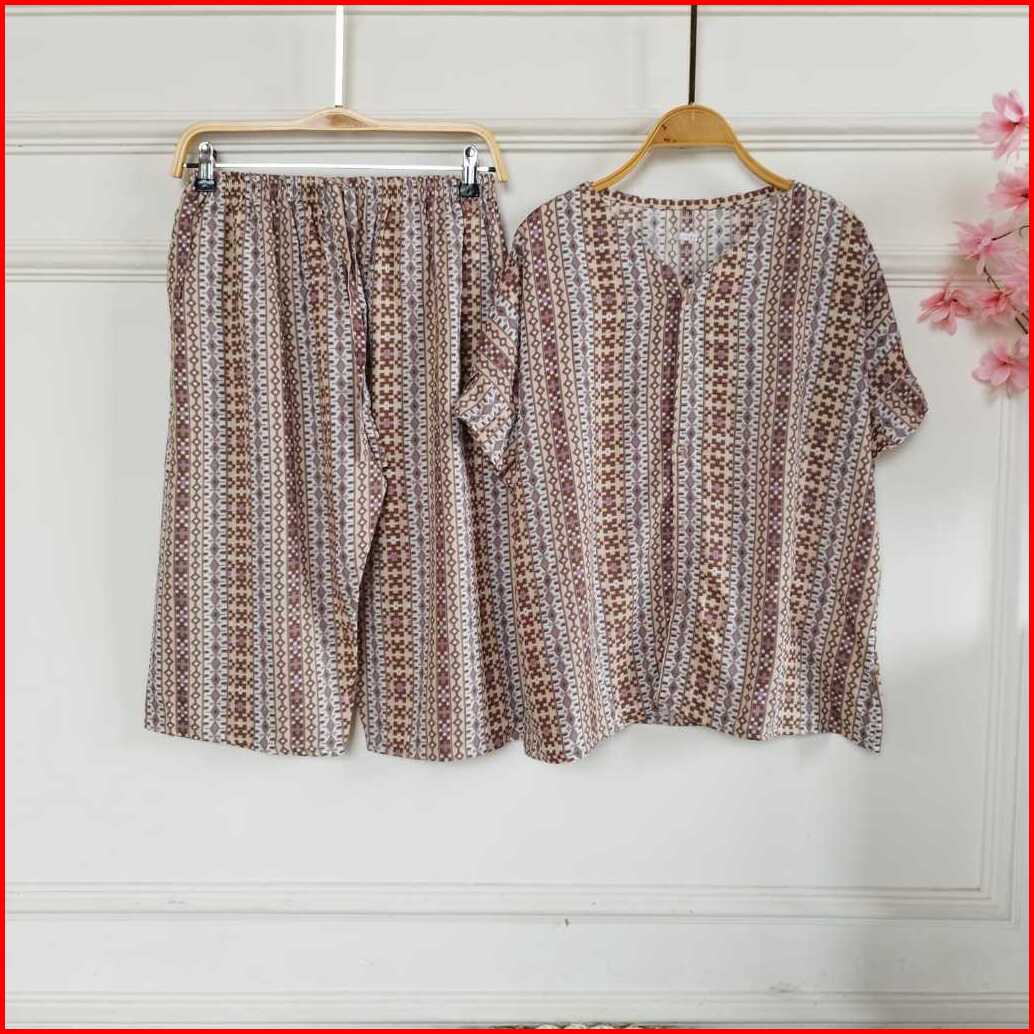 Piyama Kancing Hits Non Kerah V-neck Piyama Oneset Busui Piyama Rayon V-kerah 7 8 Homewear