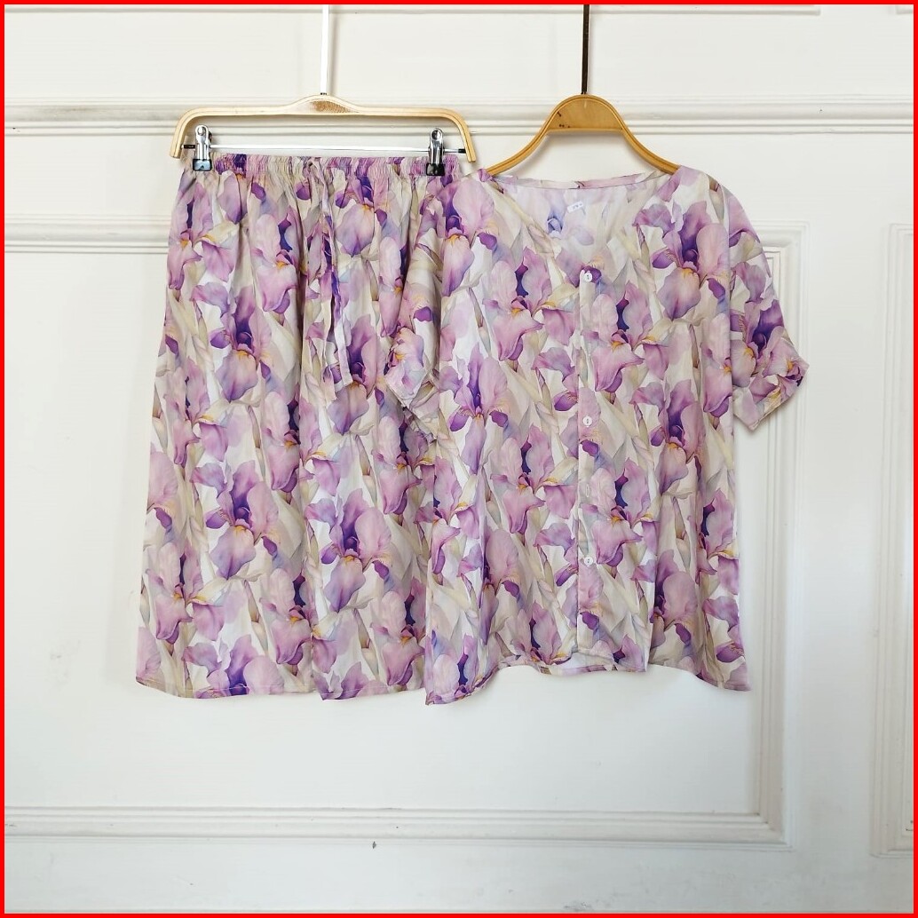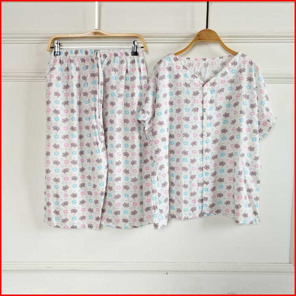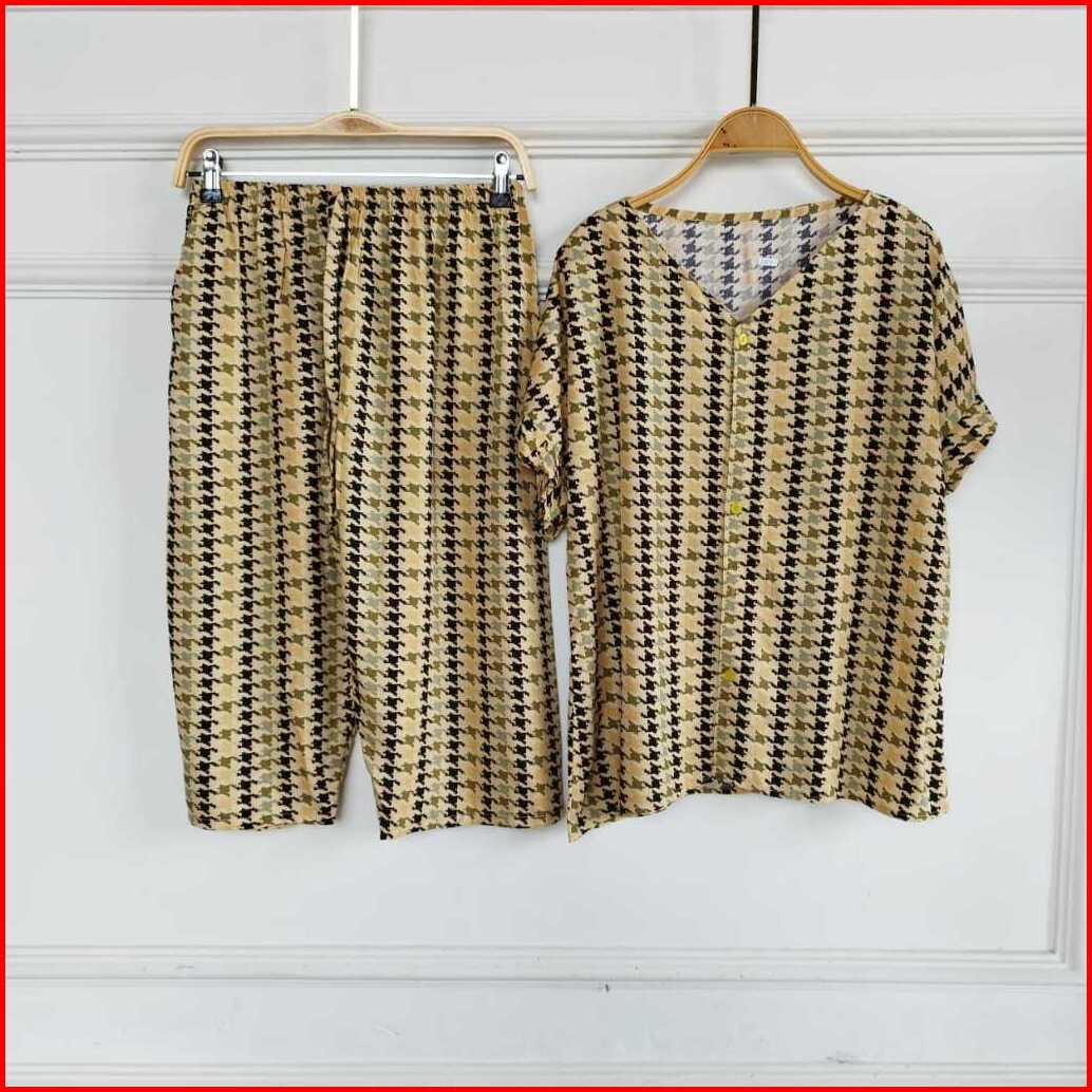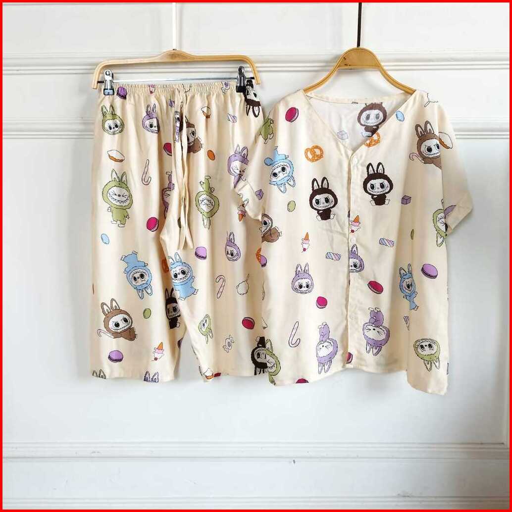 Piyama Kancing Hits Non Kerah V-neck Piyama Oneset Busui Piyama Rayon V-kerah 7 8 Homewear