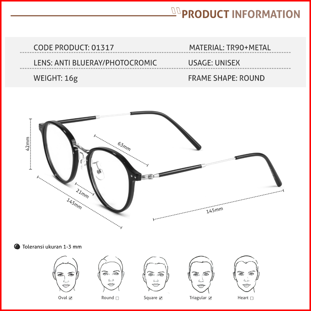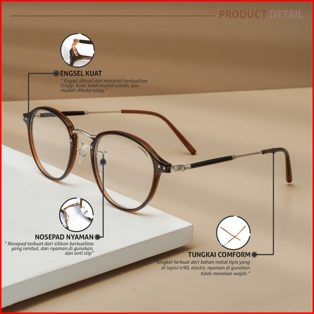 La Chapella Kacamata Anti Radiasi Blueray Photocromic Bluecromic Metal Tr90 Bulat Pria Wanita 01317