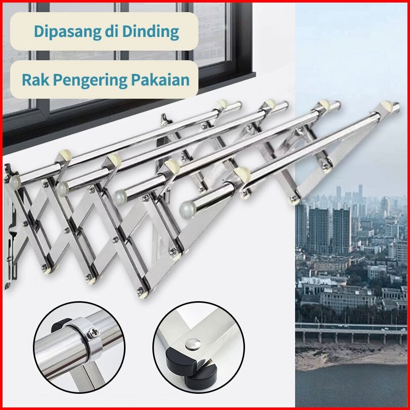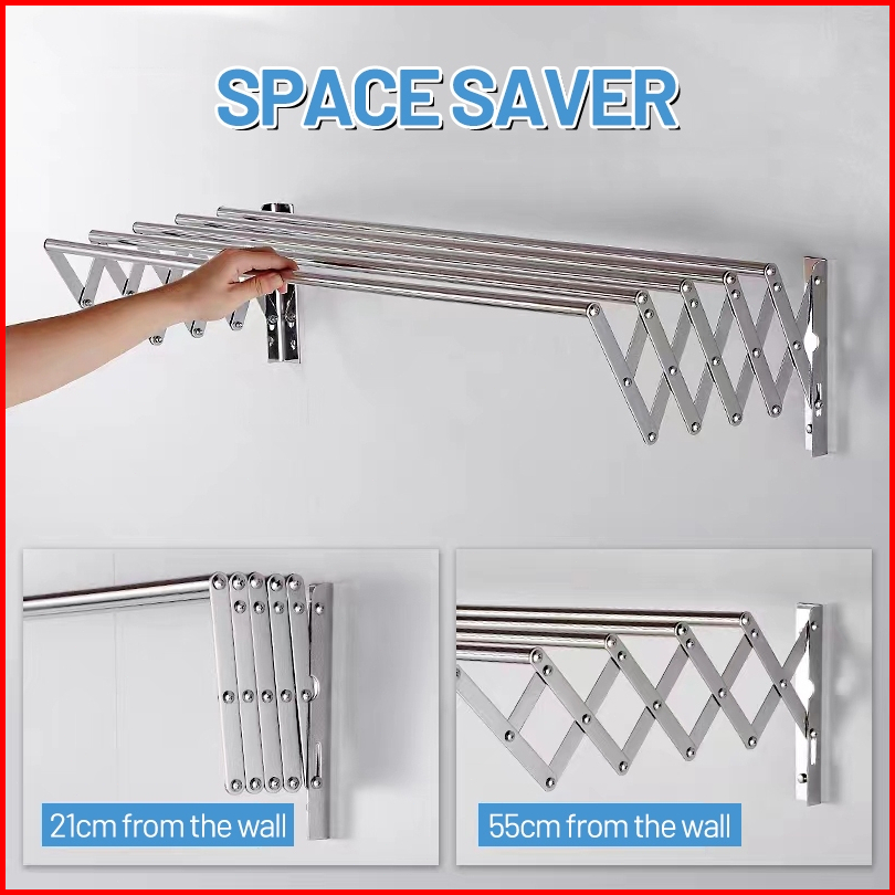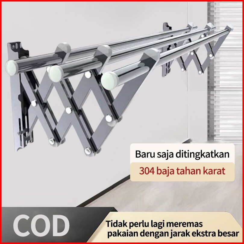 Sus 304 Jemuran Lipat Dinding Gantungan Teleskopik Jemuran Pakaian Dinding Jemuran Baju Pakaian Dinding Stainless Steel