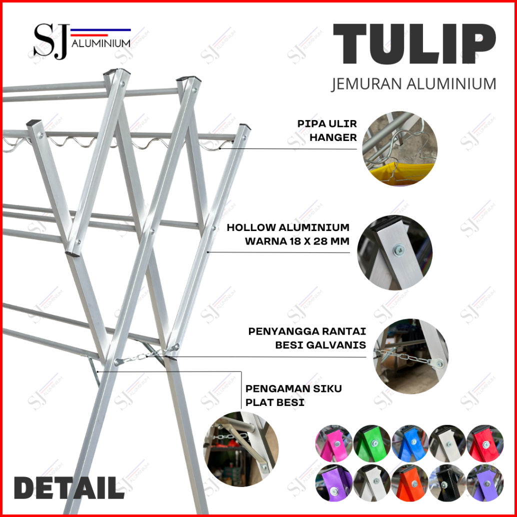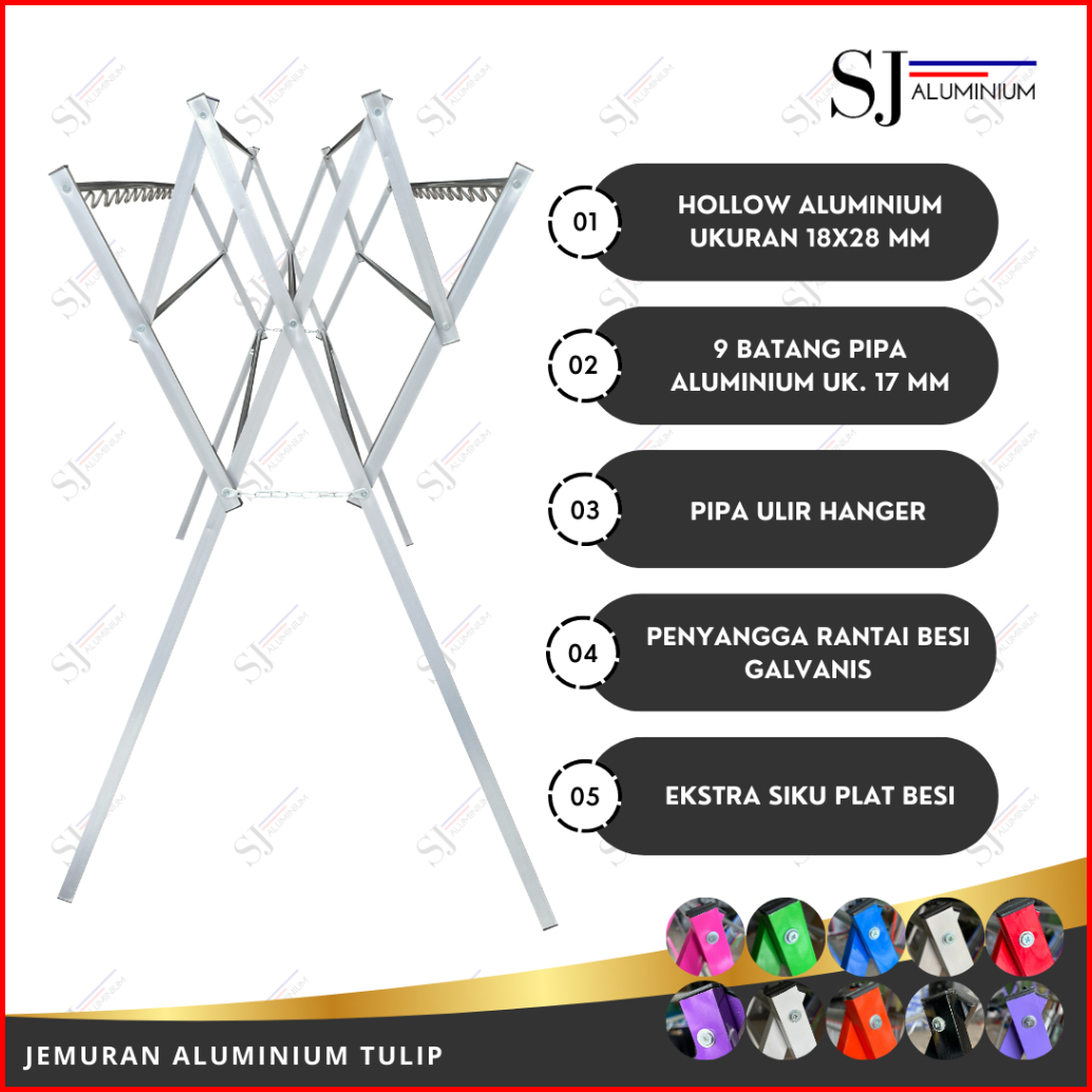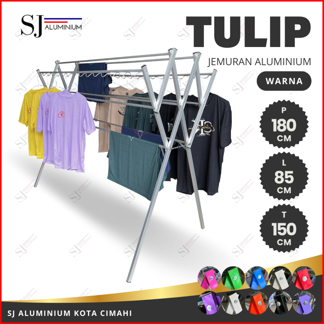 Sjaluminium - Jemuran Baju Aluminium Jemuran Pakaian Lipat Rak Handuk Bayi Tulip Warna 1 8 Meter 180cm