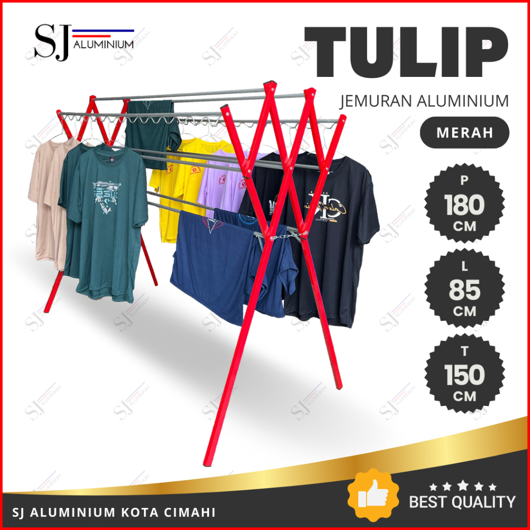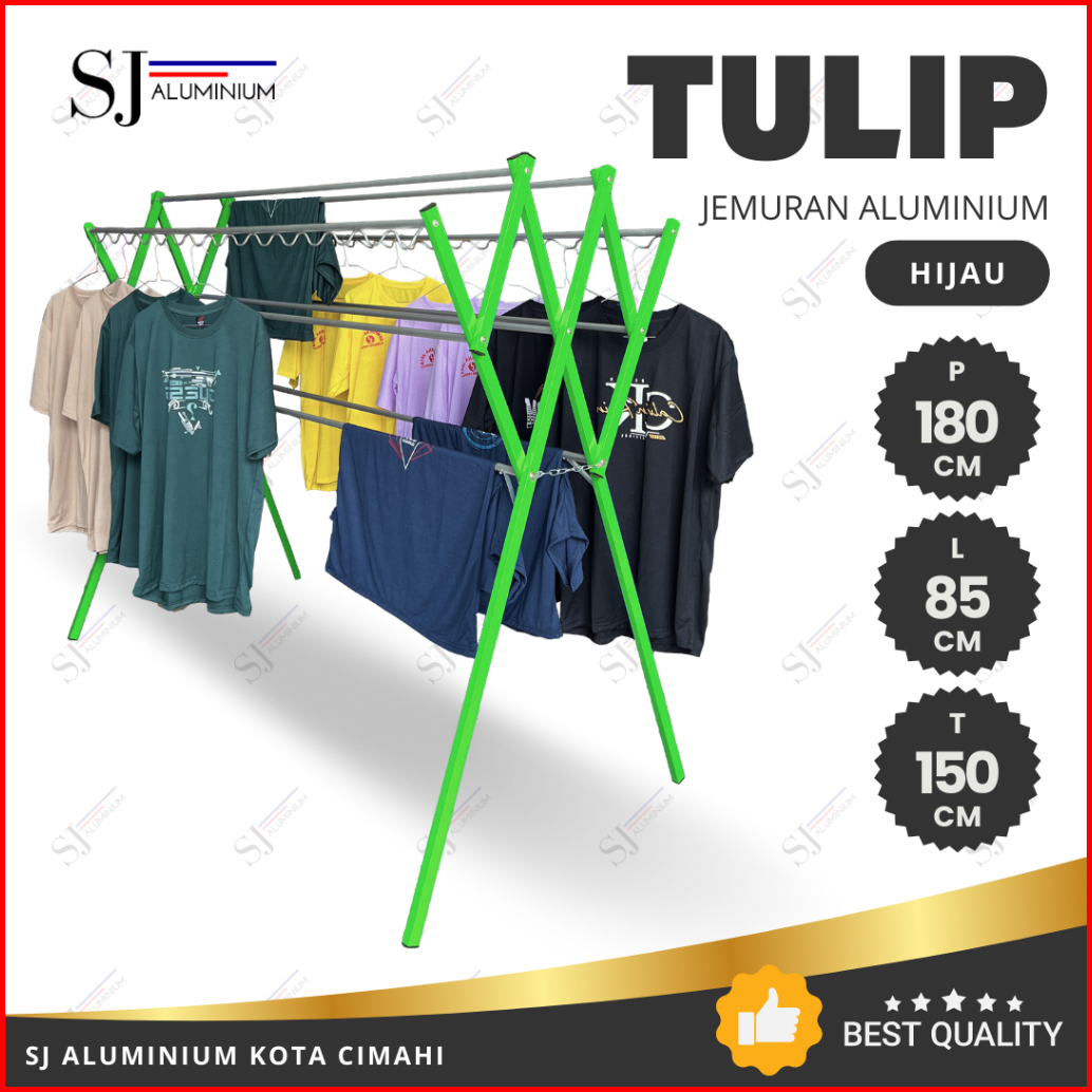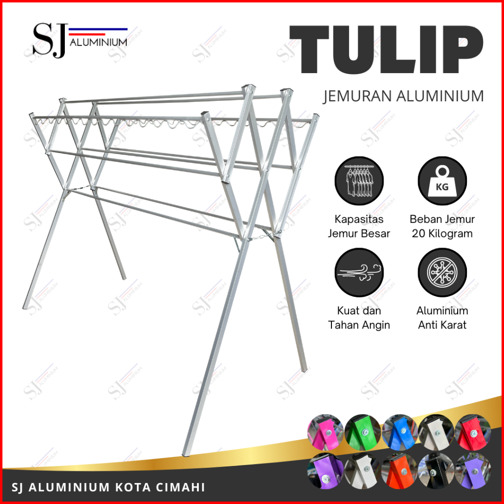 Sjaluminium - Jemuran Baju Aluminium Jemuran Pakaian Lipat Rak Handuk Bayi Tulip Warna 1 8 Meter 180cm