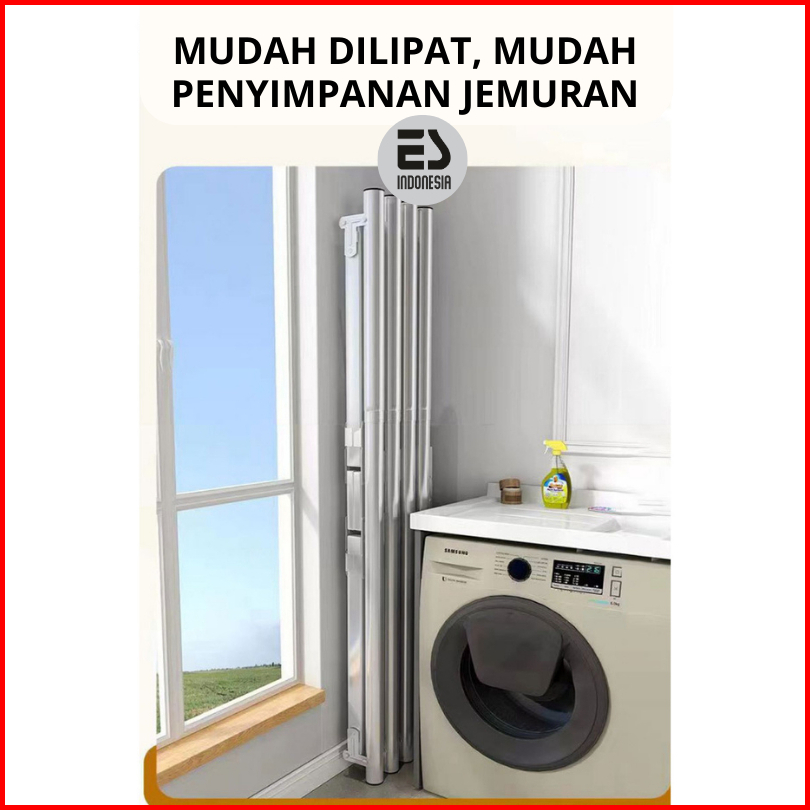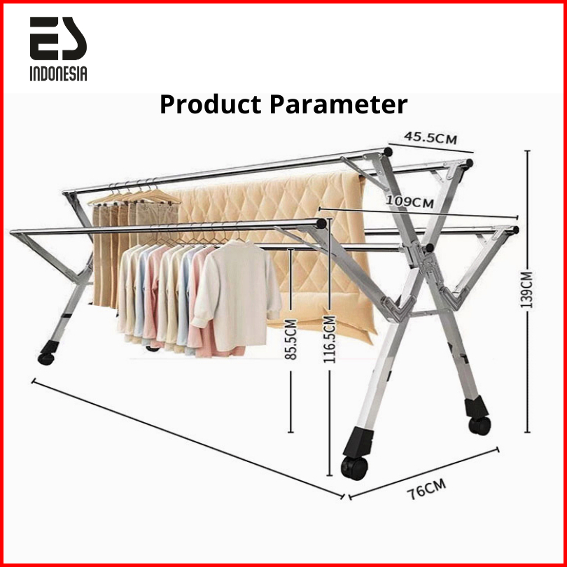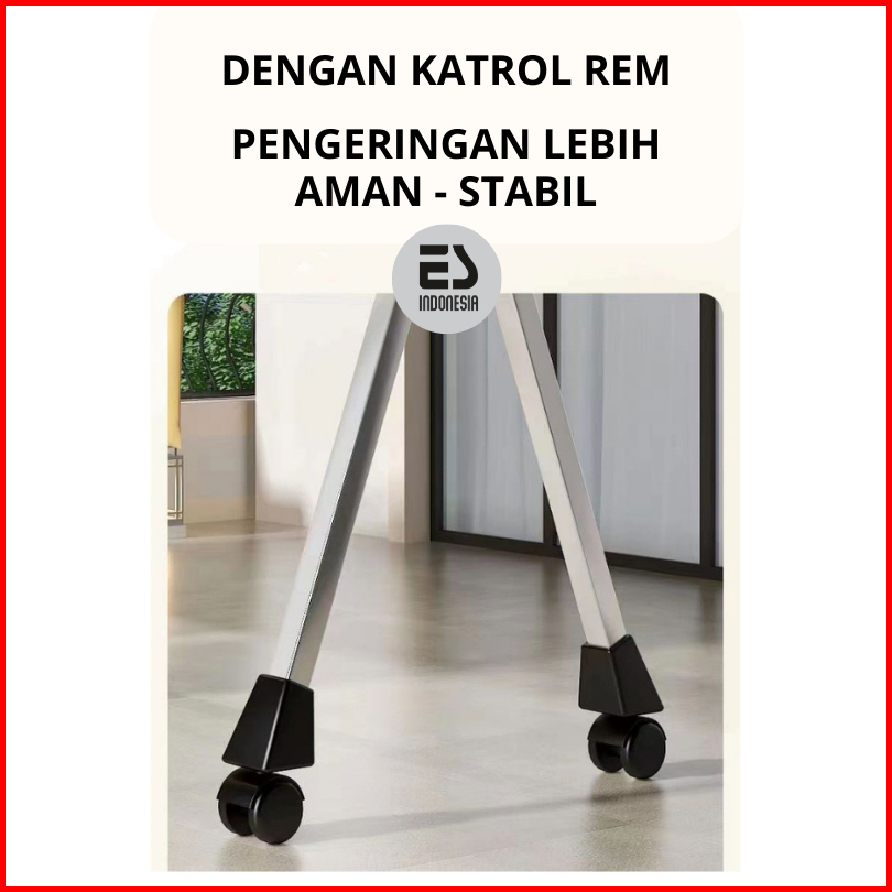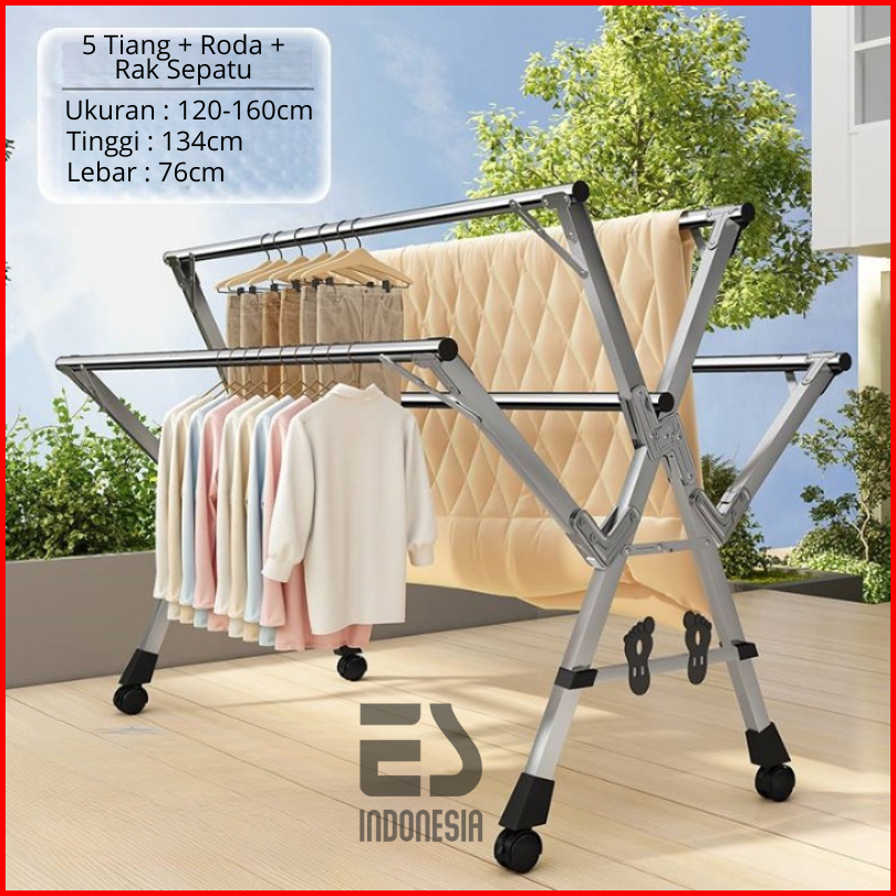 Esindo Jemuran Baju Stainless Lipat Dengan Roda 5 Tiang Pengering Baju