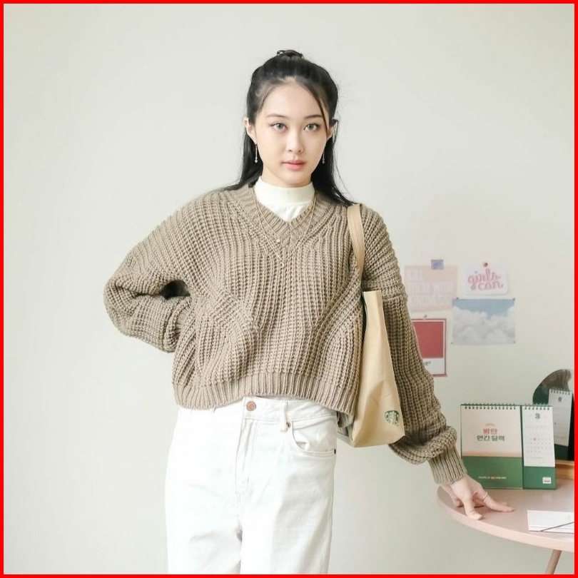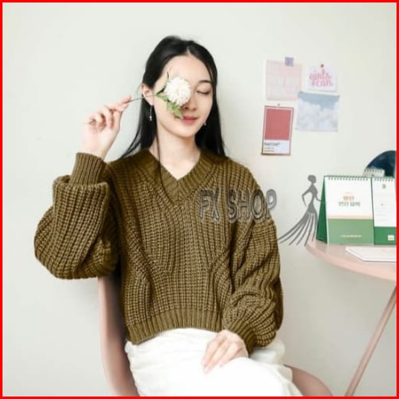 Fx Shop Hanna Oversized Knit Yeji Sweater Crop Oversize Premium V Sweater Rajut