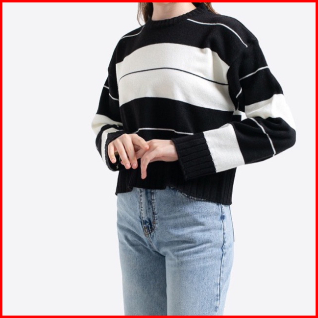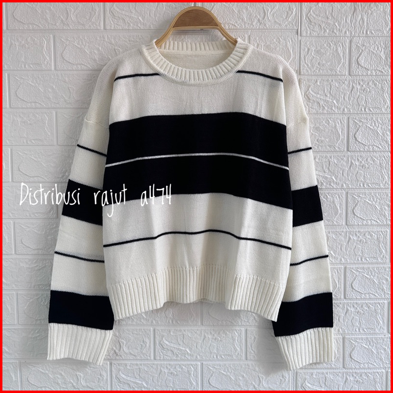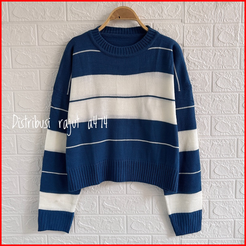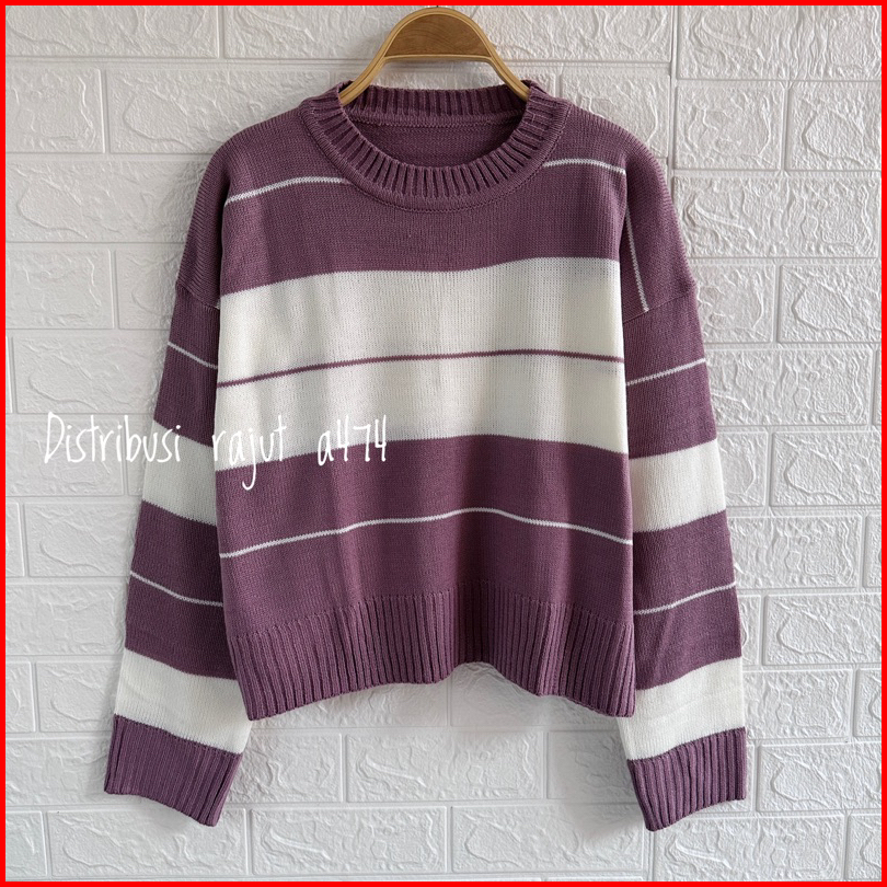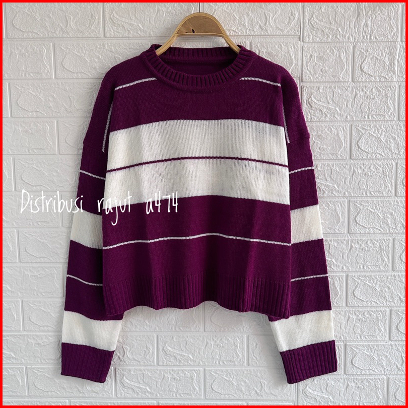 Martata Knit Crop Sweater Atasan Rajut Wanita Lengan Panjang
