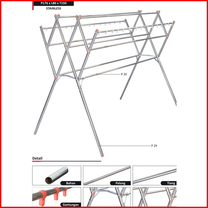 Wins Jemuran Pakaian Jumbo Handuk Baju Stainles Steel Alumunium