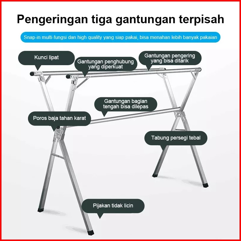 Laris Unik Barang Baru Tempat Jemuran Baju Lipat Stainless Steel Gantungan Pakaian Anti Karat Kuat Portable Ukuran 180 2