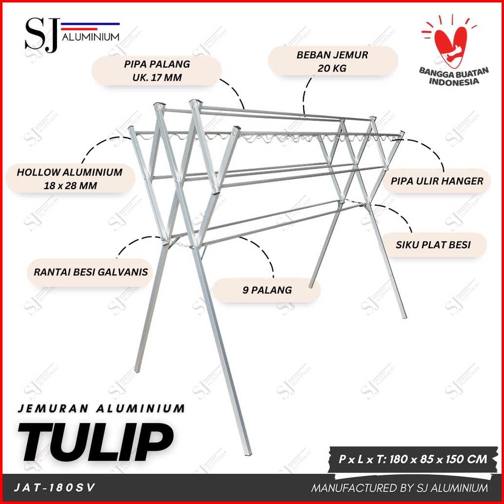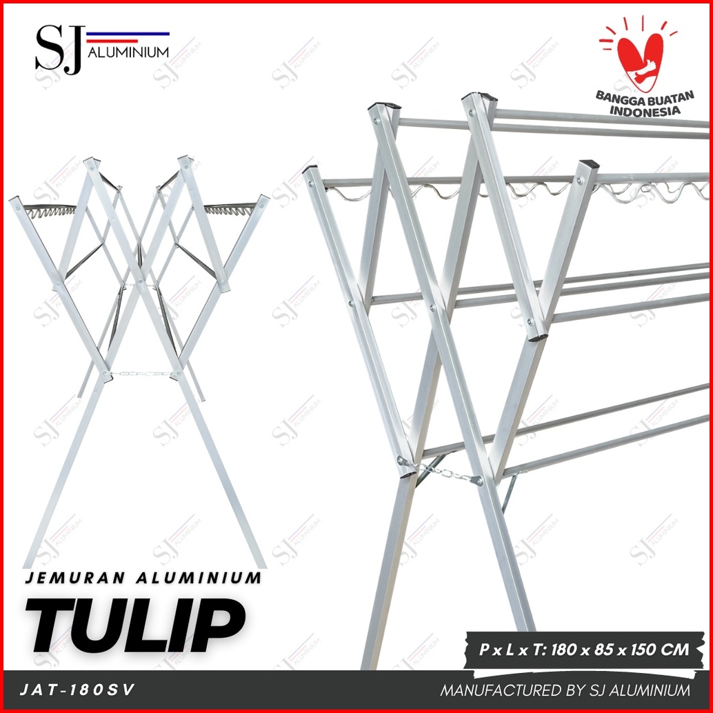 Jemuran Aluminium Jemuran Baju Rak Handuk Jemuran Pakaian Hanger Gantungan Baju Lipat Tulip Silver - 180 Cm 1 8 Meter 1