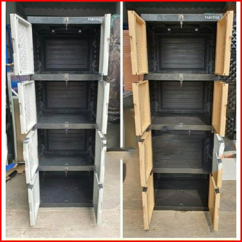 Rak Plastik Lemari Plastik Lemari Pakaian Lemari Baju Serbaguna 4 Susun 8 Pintu Full Kunci