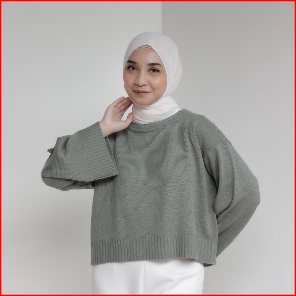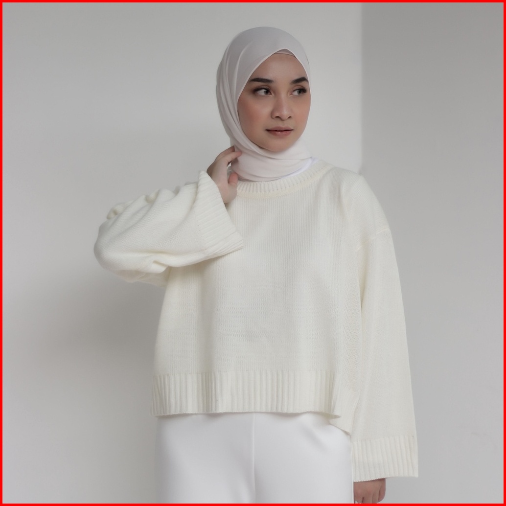 Ahlami- Noura Basic Crop Top Oversize Crop Top Rajut Sweatshirt Crop Oversize Panjang Lengan Sweater Oversize