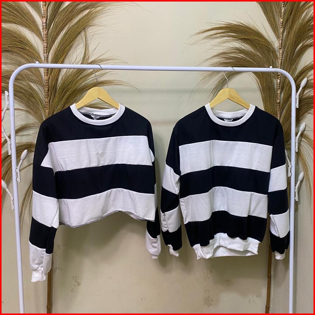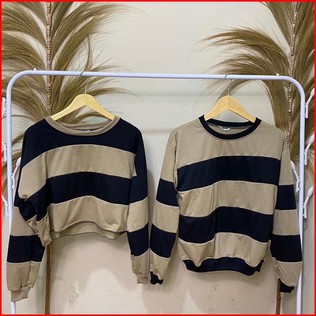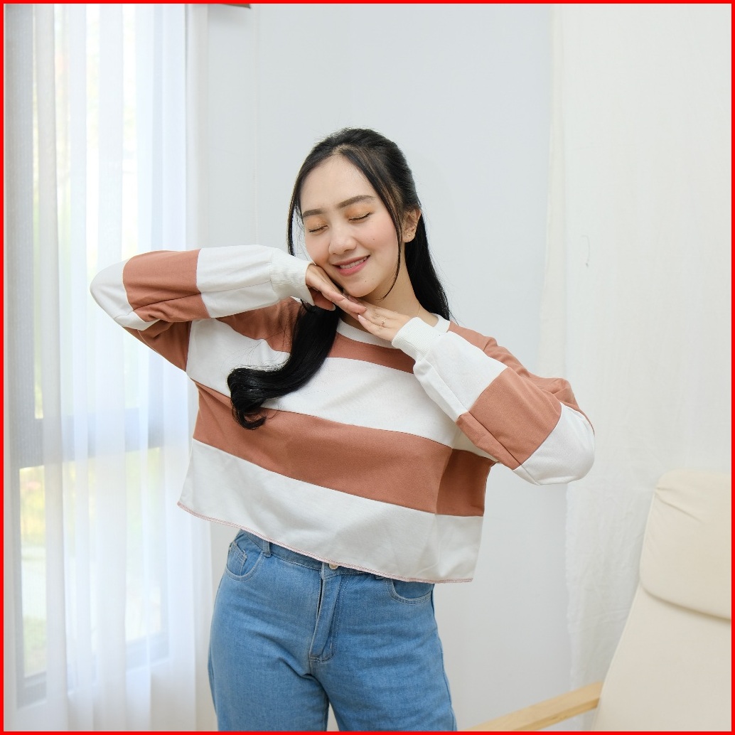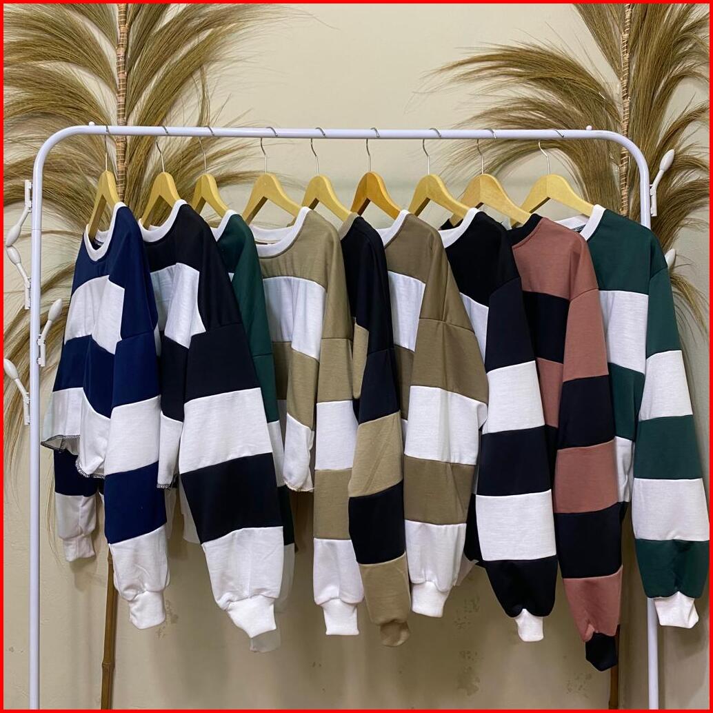 Sweater Stirp Basic Crewneck Oversize Wanita Strip Mix Warna - Sweater Oversize Wanita