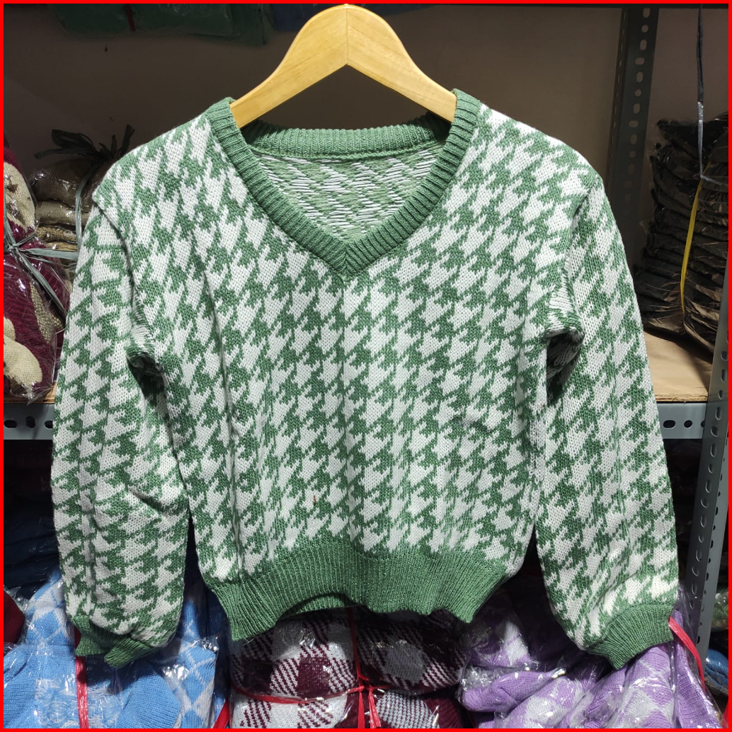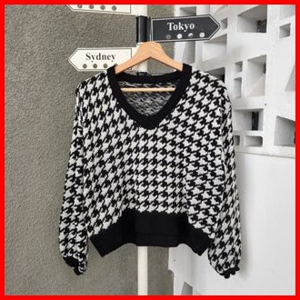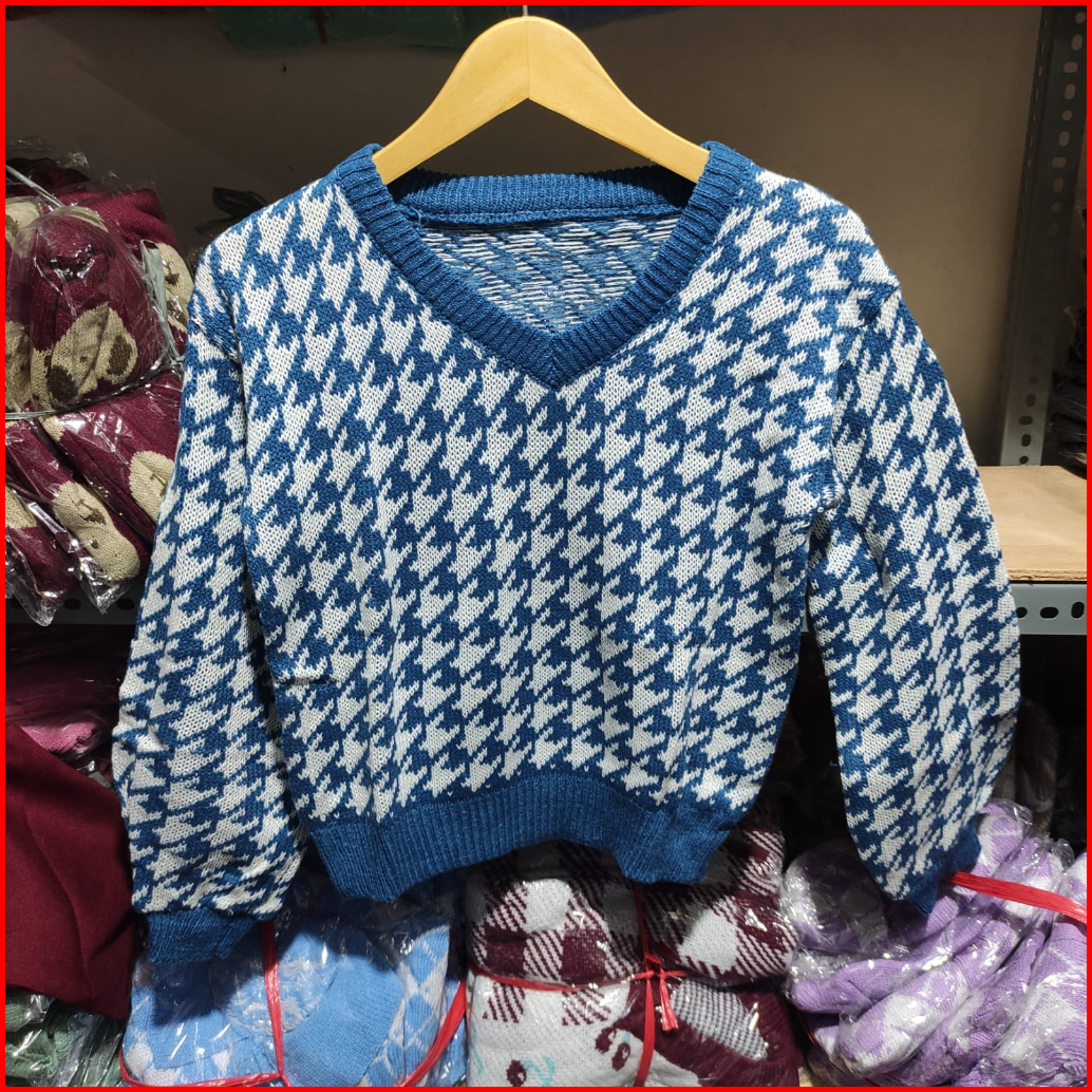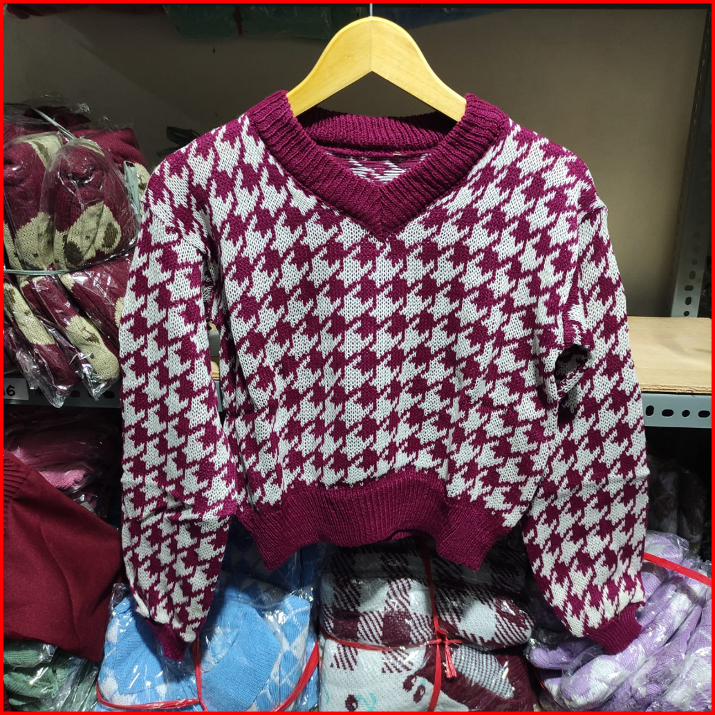 Crop Sweater Houndstooth Rajut Outer Wanita Trendy Murah Sweater Rajut Crop Top